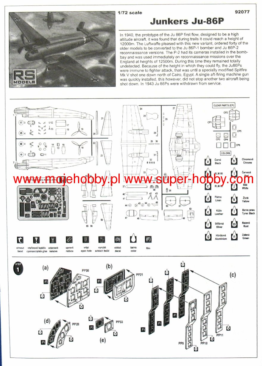 The Junkers Ju 86 was a German medium-range bomber and a low-wing passenger plane from the interwar period and World War II. The drive - in the basic version - was provided by two engines Jumo 205C-4 with 600 HP each. The flight of the prototype took place in 1934, and the serial production began in 1936, ending with the production of about 900 aircraft of this type. The deck armament consisted of three 7.92 mm machine guns. The plane could also take loads of up to 1,000 kilograms. Work on the Ju 86 began in 1934, when an order for a passenger plane (Lufthansa) and a medium-range bomber (Luftwaffe) were placed at this airline company. A relatively high pace of work on the new plane was also imposed. On the one hand, it led to the prototype test in the same year (1934), but also made it impossible to select the engines for the new machine more carefully, which became its Achilles' heel. The machine was also not liked by the pilots due to the high failure rate of the entire structure and poor visibility from the cabin - especially in the first production versions. All this resulted in the appearance of many versions of the aircraft, in which attempts were made to correct any flaws in the design - not always in a successful way. One of the first versions was the Ju 86 D (bomb version). Later, a version of the Ju 86 P-1 (high-altitude bomber powered by Jumo 207B engines) or the Ju 86 R-1 (photo reconnaissance version) appeared. Ju 86 bombers were used in combat during the Spanish Civil War (1936-1939) and during the invasion of Poland in September 1939. Ju 86 planes were exported to e.g. Bolivia, Chile and Hungary.
