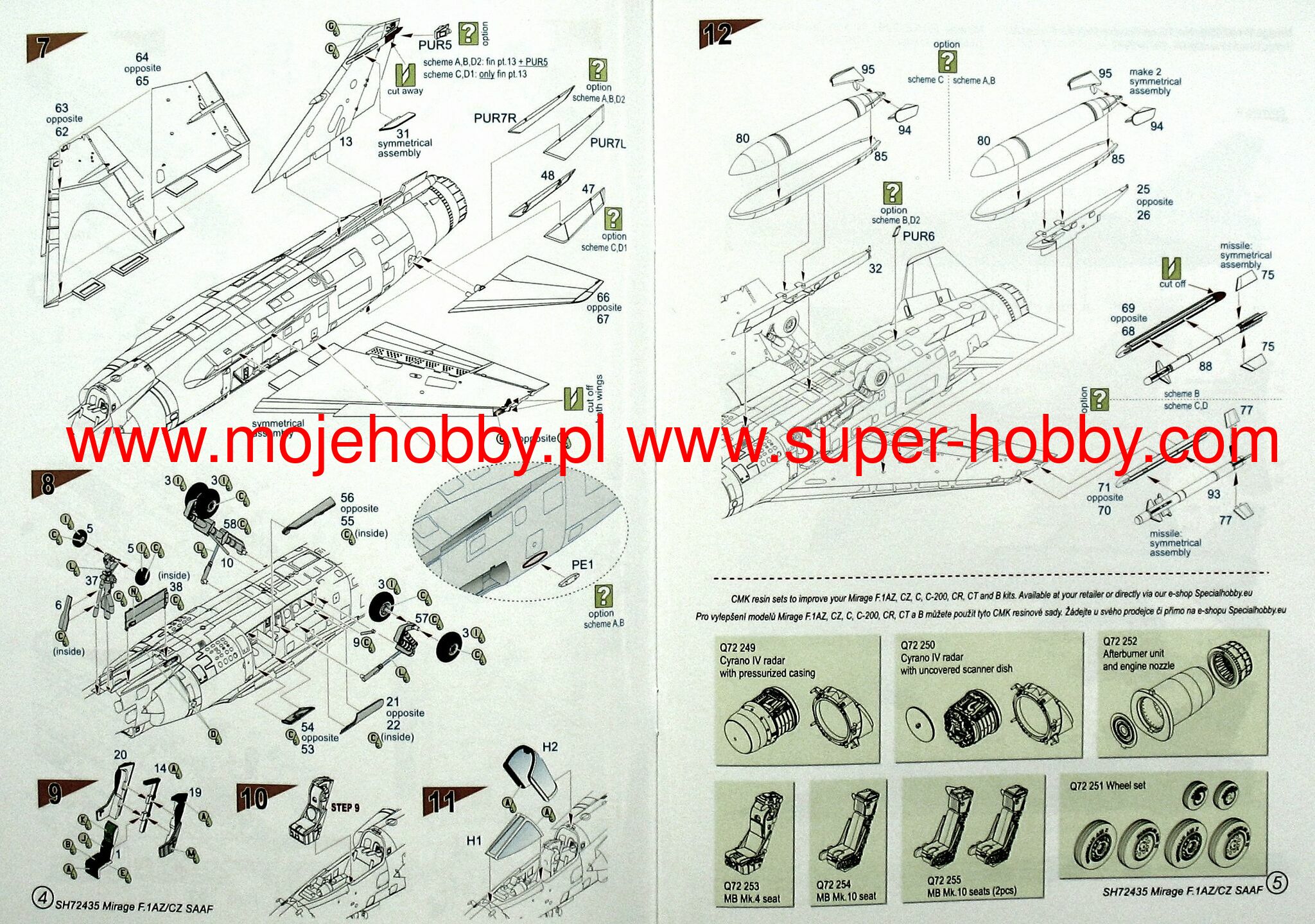 The Dassault Mirage F.1 is a French, single-engine, multi-purpose fighter with a half-shell high wing structure, with wings equipped with slots and lapel pins with a classic tail tip. Mirage F.1 became the heir to the successful Mirage III / V series. The first prototype flew on December 23, 1966. He recorded a number of records - 2.12Ma at an altitude of 11,000 meters and 1,300 km / h at low flight altitudes. The Mirage F.1 required strips of 500 to 800 meters in length for the operation. The new plane had a similar size and lift surface as the Mirage III, but thanks to the use of integral tanks it took up 40% more fuel. The F.1 airplane was characterized by the minimum time necessary for take-off. This was possible by simplifying the operation and allowing the air transport of all necessary ground equipment. The recovery time between operations was 15 minutes. Thanks to the on-board power supply and high-pressure refueling system, the refueling time was only 6 minutes. The Thomson-CSF Cyrano IV radar had 80% greater range than the Cyrano II with MirageIII. When the pilot selected the target manually, the radar automatically followed him. Several main versions of the Mirage F.1 were produced, including F.1C, a classic fighter version, adapted to attack on land targets, introduced into use in 1969. The next version is the F.1B, used as a two-seat school machine (delivered since 1980). Also interesting was the Mirage F.1CT model, i.e. an attack aircraft, the prototype of which appeared in 1991. In total, about 770 copies of all versions were made. It was exported to many countries, including Iraq, South Africa, Greece, Spain and Morocco. Technical data (version F.1C): length: 15.23m, wingspan: 8.4m, height: 4.5m, maximum speed: 2.2Ma, climb speed: 213m / s, maximum range (with overhead tanks): 3300 km, maximum ceiling 2000 m, armament: fixed - two 30 mm DEFA 553 cannons, suspended - up to 4000 kg of cargo.