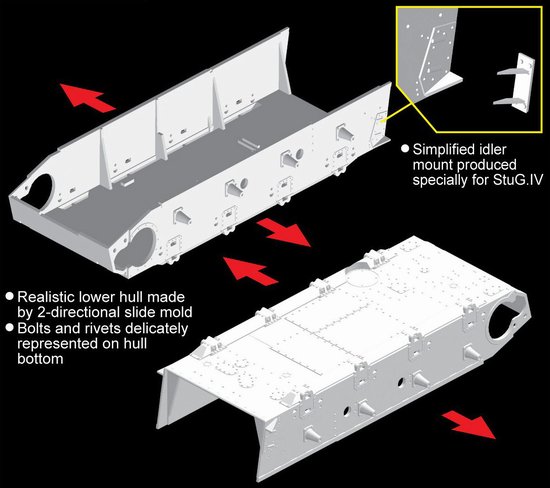 Описание Компания Dragon представляет пластиковый набор Smart Kits в масштабе 1/35, тип Late Production. Он тщательно обработан и детализирован, имеет правильные характеристики, такие как новый нижний корпус, подходящий для упрощенного крепления натяжного колеса, совершенно новая направляющая Magic Track, новая броня крыши и дорожный замок. Остальные компоненты заимствованы из предыдущих комплектов Panzer/StuG компании Dragon. К ним относятся высокодетализированная пушка StuK40 калибра 7,5 см с ее затвором и станком, отдельные металлические броневые юбки, глушители выхлопной системы поздней модели и удобные гусеницы Magic Tracks. Этот комплект представляет собой прекрасное сочетание инженерного качества и удобства, позволяющего экономить время.