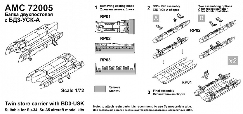 Купить AMC 72005 ДОПОЛНЕНИЯ ИЗ СМОЛЫ БАЛКА ДВУХПОСТОВАЯ 2ШТ С БД3-УСК-А 4ШТ. ДЛЯ С-34 И С-35 (1/72)