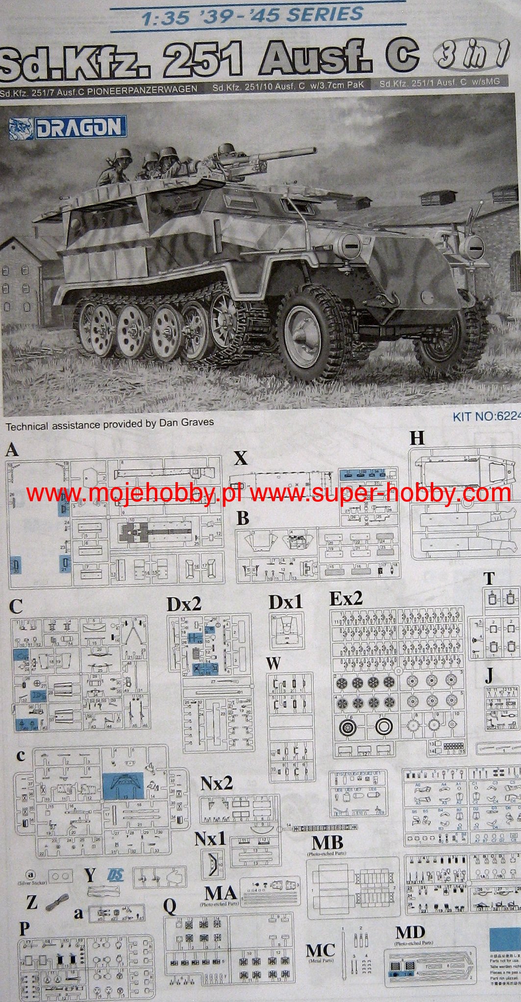 6224 ТЕХНИКА И ВООРУЖЕНИЕ SD.KFZ.251 AUSF.C 3 IN 1, 251/7, 251/10 3.7CM PAK, 251/1 SMG dragon 1/35