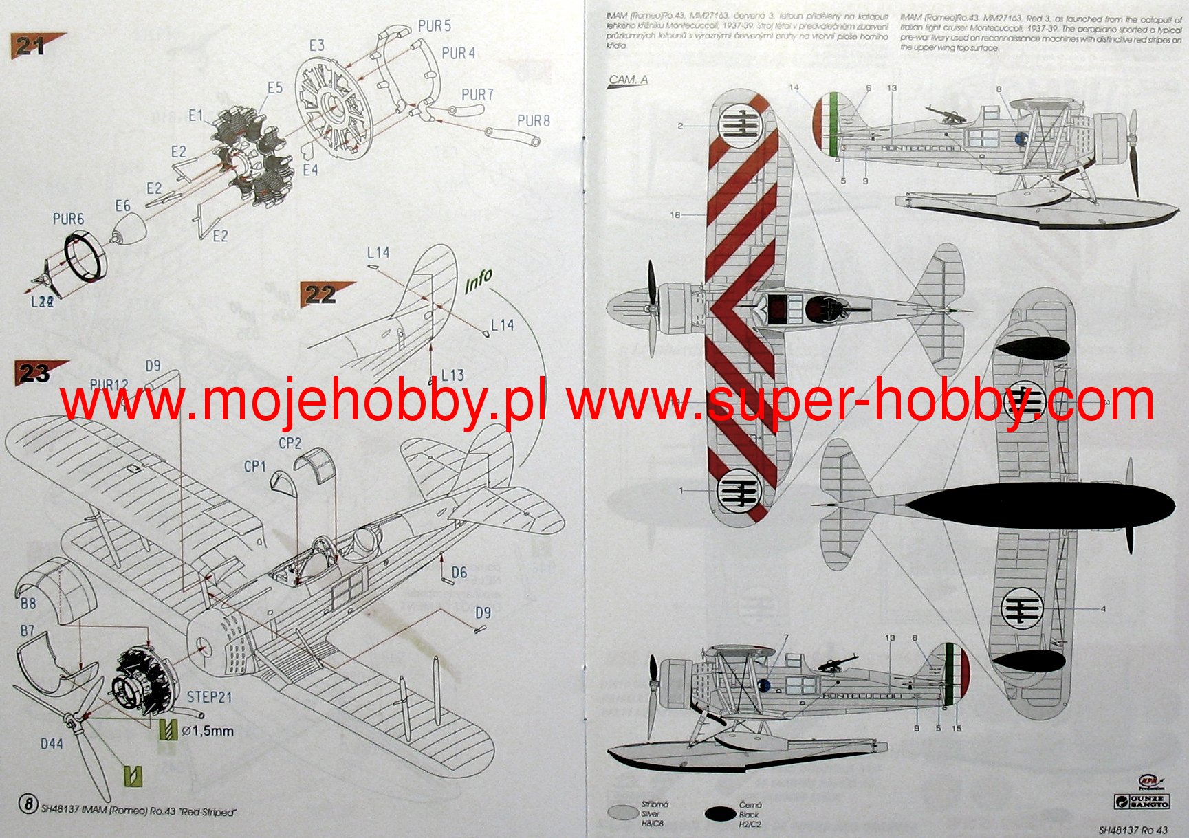 The IMAM Ro.43 was an Italian reconnaissance seaplane in a mixed biplane configuration. The drive was provided by a single engine Piaggio PX R 700 hp. The prototype flight took place in 1934. Serial production started in 1935 and lasted until 1941, ending with the production of about 190 machines of this type. The aircraft was armed with two 7.7 mm Breda-SAFAT machine guns. IMAM Ro.43 was created in response to the demand for a new seaplane that could take off from a ship catapult reported by the Italian Navy (owned by Regia Marina). When designing the Ro.43, the experience and many elements of the Ro.37 aircraft were used. After a short period of trials and tests, the Ro.43 seaplanes entered series production and were quickly fitted into the large Regia Marina ships. Unfortunately, it turned out that this machine is an underdeveloped design, with poor performance and average sea performance (huge problems with taking off and landing in rough seas). By 1941, the production of the Ro.43 was discontinued and they began to be replaced by Reggiane Re.2000 fighters specially adapted for operation with ships. IMAM Ro.43 machines were used in the course of operations in the Mediterranean in 1940-1943, incl. in the initial phase of the Battle of Cape Matapan in March 1941.