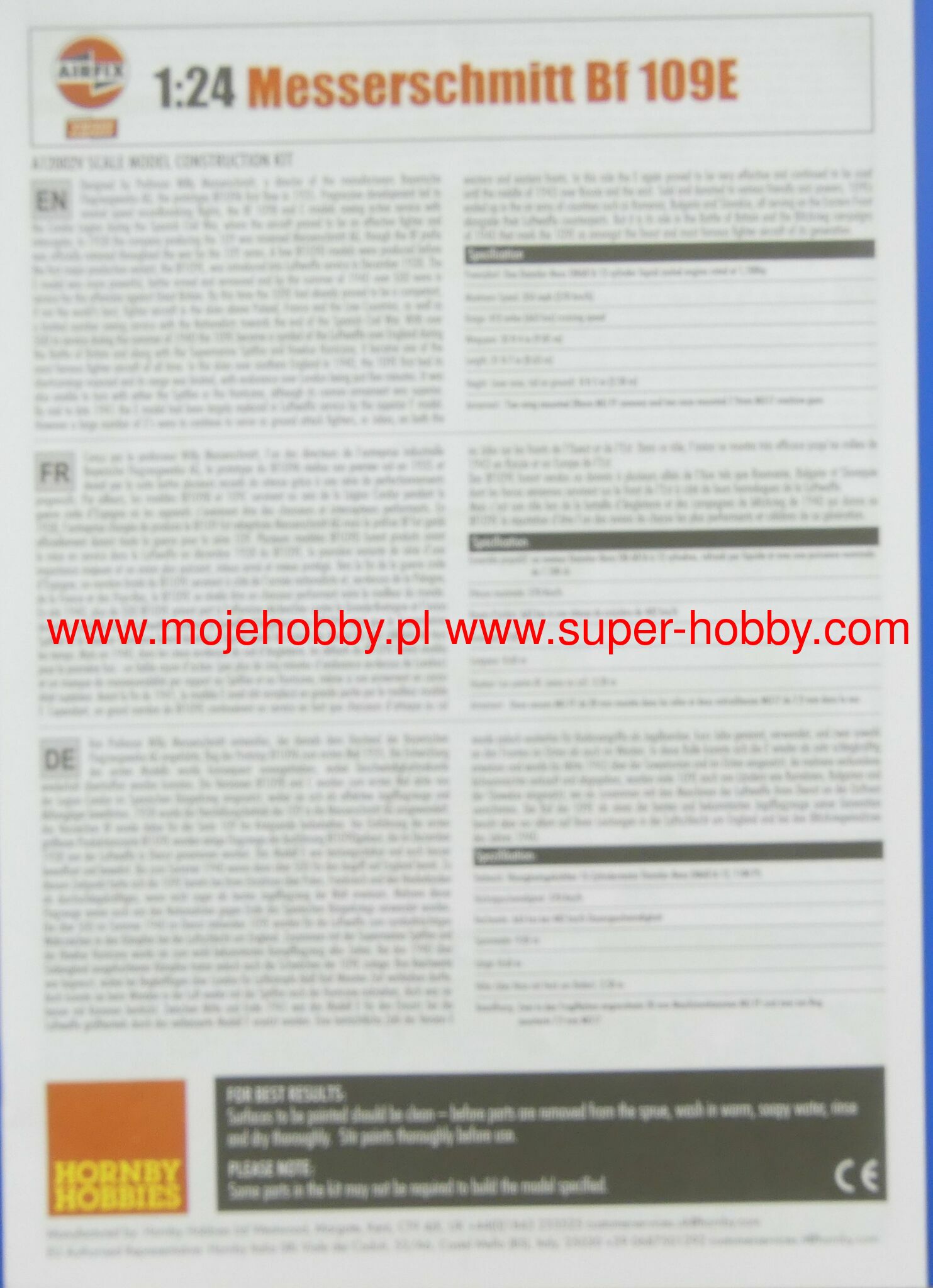 Messerschmitt Bf-109 to niemiecki, jednosilnikowy samolot myliwski o konstrukcji metalowej, w układzie dolnopłata z usterzeniem klasycznym. Okazał się podstawowym i najliczniej produkowanym myliwcem Luftwaffe w czasie II wojny wiatowej. Oblot prototypu miał miejsce 29 maja 1935 roku, a produkcja seryjna trwała w latach 1936-1945. W sumie szacuje się, że łšcznie wyprodukowano około 35000 myliwców Messerschmitt Bf-109 wszystkich odmian, z czego wiele po wojnie trafiło do sił powietrznych Czech i Izraela. Korzenie Bf-109 sięgajš konkursu ogłoszonego w 1933 roku przez Luftwaffe na nowy samolot myliwski. W konkurencji z He-112, projekt Bf-109 poczštkowo przegrał, ale dzięki intrygom Williego Messerschmitta , projekt mógł być kontynuowany i ostatecznie to on okazał się zwycięzcš konkursu, stajšc się podstawowym myliwcem Luftwaffe. W toku produkcji powstało kilka głównych odmian samolotu Bf-109. Pierwszš seriš przedprodukcyjnš był Bf-109B (Berta) z różnymi wersjami silnika Junkers Jumo 210 (A lub Da). Były one testowane w Hiszpanii od 1937 roku w czasie wojny domowej. Kolejna wersja to Bf-109C (Cezar). Posiadały one inny silnik od wersji B, oraz rozbudowane uzbrojenie złożone z dwóch działek 20mm oraz 2 km kal.7,92mm. Także te maszyny walczyły na niebie Hiszpanii. Trzecia wersja to Bf-109D (Dora) z silnikiem Junkers Jumo 210 Da lub Daimler-Benz DB 600. Walczyła ona w kampanii wrzeniowej, ale na przełomie 1939/1940 została zastšpiona przez wersję E. Najsłynniejszym modelem był Bf-109E (Emil) z silnikiem Daimler-Benz 601A lub N. Jako pierwszy model posługiwał się trzy-, a nie dwu-łopatowym migłem. Bf-109E walczyły w kampanii francuskiej, nad Angliš oraz w Afryce Północnej i na froncie wschodnim. Asem, który rozpoczšł swojš karierę włanie na Bf-109E był słynny Adolf Galland. Kolejna wersja to Bf-109F (Friedrich), która zdaniem niemieckich pilotów była najdoskonalsza aerodynamicznie. Posiała zmieniony kształt kadłuba, skrzydeł, owiewki kabiny, ale nie zastosowano nowego silnika. Wprowadzano go do służby na przełomie 1940/1941 roku. W ramach rozwoju konstrukcji opracowywano kolejne specyfikacje Bf-109, z których wersję G (Gustav) wyprodukowano w największej iloci egzemplarzy. Najpoważniejszš zmianš podnoszšcš osišgi maszyny było zamontowanie nowego 12-cylindrowego silnika Daimler-Benz DB605A o mocy 1475KM. Uzbrojenie Bf-109G stanowiła para karabinów maszynowych 13mm znajdujšcych się w kadłubie przed owiewkš kabiny pilota, oraz działko MG151 20mm lub cięższe MK108 30mm. Ostatniš produkowanš na masowš skalę wersjš był Bf-109K (Kurfirst), której produkcja ruszyła w padzierniku 1944 roku. Jako silnik zastosowano jednostkę Daimler-Benz DB 605DB lub DC. Bf-109K był najszybszš wersjš z produkowanych w czasie II wojny wiatowej, osišgajšc do 730km/h. Poza tym powstały dwie wersje- H i Z, były to jednak wersje raczej eksperymentalne i ich produkcja wielkoseryjna nie ruszyła. Kolejne usprawnienia w dziedzinie napędu i uzbrojenia uczyniły Messerschmitta Bf-109 jednym z najgroniejszych myliwców II wojny wiatowej, a jednoczenie pokazały ogromny potencjał drzemišcy w nieco kanciastym płatowcu stworzonym przez Williego Messerschmitta. Dane techniczne (wersja Bf-109 G-6): długoć: 8,95m, rozpiętoć skrzydeł: 9,92m, wysokoć: 2,6m, prędkoć maksymalna: 640km/h, prędkoć wznoszenia: 17m/s, zasięg maksymalny: 850km, pułap maksymalny 12000m, uzbrojenie: stałe- 2 karabiny maszynowe MG131 kal.13mm oraz 1 działko MG151 kal.20mm , podwieszane-250 kg bomb, lub 2 wyrzutnie pocisków Wfr. Gr. 21. Co oprócz modelu będę potrzebować do jego sklejenia?