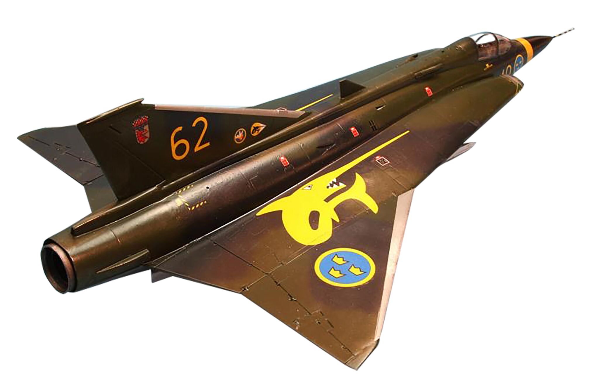 SAAB J-35 Draken был одноместным истребителем шведского производства с цельнометаллической полуобшивной конструкцией с крыльями в так называемом двойная дельта. Привод обеспечивался одним двигателем Volvo Flygmotor RM-6-C. Полет прототипа состоялся в 1955 г., а серийное производство продолжалось в 1955-1974 гг. В ее ходе было создано около 650 самолетов этого типа. К 1999 году все J-35 были списаны. SAAB J-35 Draken был создан в результате озвученной в 1949 году потребности ВВС Швеции в самолете, способном действовать в любых погодных условиях, на больших высотах и с высокой максимальной скоростью. Также требовалась высокая эргономика станка и удобство эксплуатации. В результате была создана одна из лучших охотничьих машин 1950-х и 1960-х годов, с прекрасными параметрами и характеристиками, высокой скоростью полета, а также отличной маневренностью. В ходе серийного производства было создано несколько вариантов этой машины. Первым серийно выпускался J-35A. В версии J-35B было изменено БРЭО, стали возможны атаки по наземным целям, но внешне он был почти таким же, как вариант А. Вариантом с лучшими характеристиками и самой высокой максимальной скоростью был J-35D. J-35 экспортировался в Австрию, Данию и Финляндию.Примечание: Mistercraft часто меняет наклейки, поставляемые с моделями, без предварительного уведомления, и они могут отличаться от фотографий и описаний на нашем веб-сайте. Если вам нужна конкретная версия, сообщите нам об этом, введя соответствующий комментарий в поле для комментариев при размещении заказа.
