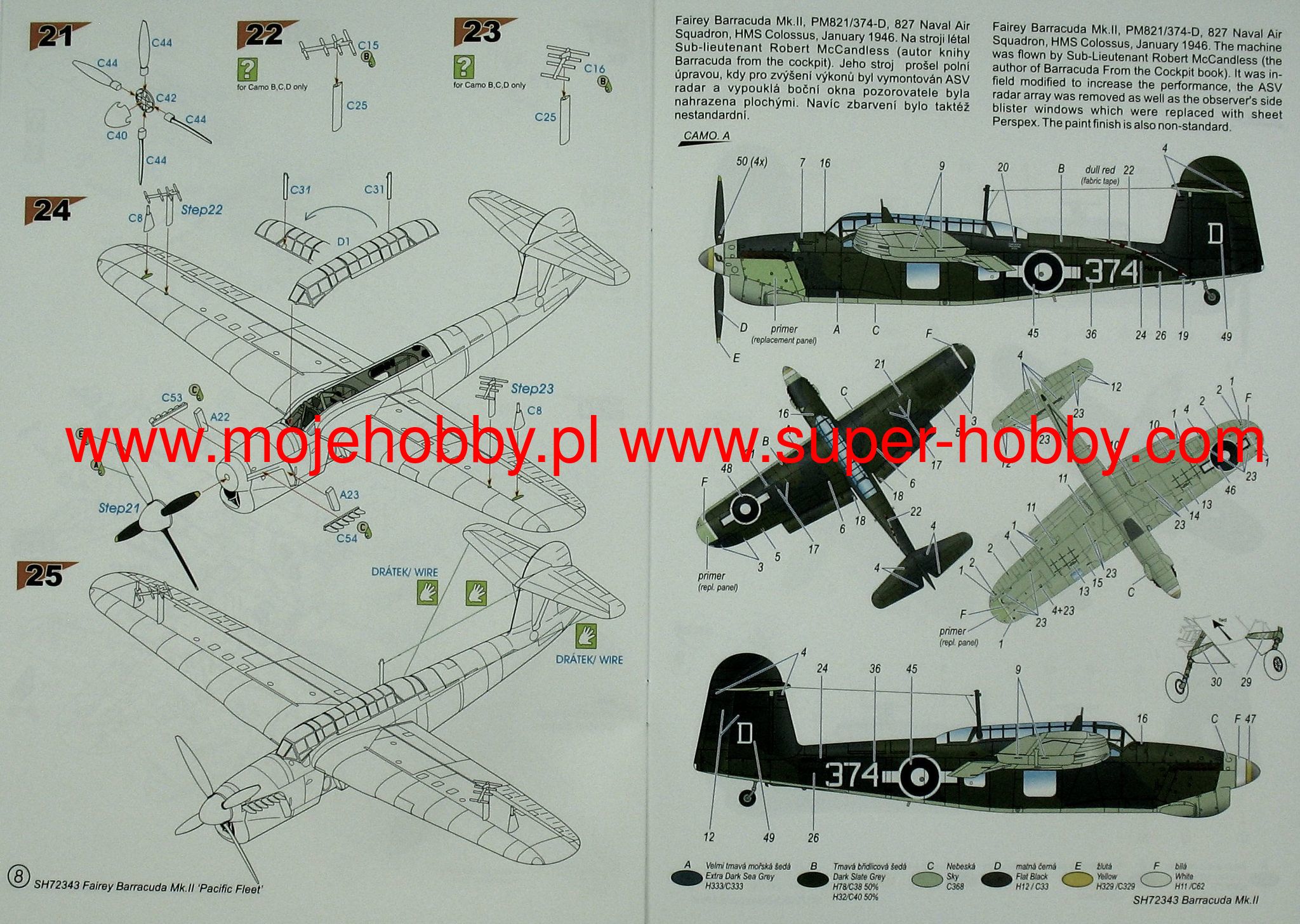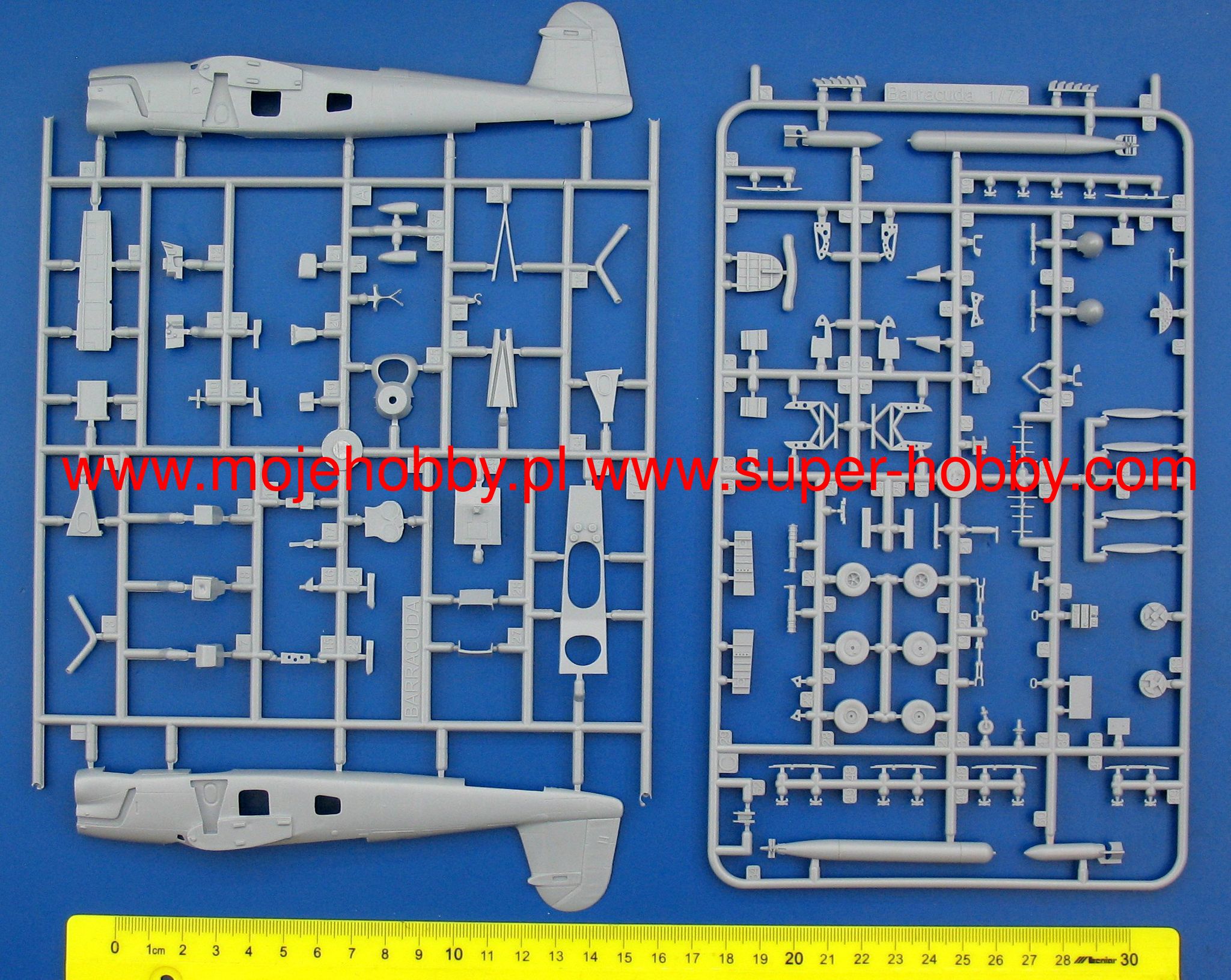 The Fairey Barracuda was a British three-seater torpedo-bomber, all-metal high-wing aircraft. The plane was built in a high-wing configuration, which ensured good visibility and facilitated the attachment of overhead weapons. The prototype of such a plane was flew on December 7, 1940. It reached a maximum speed of 430 km / h! In May 1941. the prototype made test flights from the deck of the aircraft carrier HMS "Victorius". After minor faults in the prototype were removed, 24 aircraft, designated Fairey Barracuda Mk.I in 1942, were launched into serial production. The Mk.I version was powered by a 1260HP Rolls-Royce Merlin 30 12-cylinder in-line engine. A year later, in 1943, another version of the aircraft, marked with the symbol Mk.II, entered production. It had a new 1680HP Rolls-Royce Merlin 32 engine. It also had a reinforced airframe structure compared to its predecessor. It was also the most widely produced version of the Barracuda - as many as 1,688 copies were made. In 1944, the last mass-produced version of the Barracuda-Mark III was created. It was a machine designed for ZOP operations, with a centimeter ASV Mk.X radar. The last version, the Mk.V, was made only in 30 copies and featured a new, powerful 2020KM Rolls-Royce Griffon 37 engine. In the period 1942-1945, 2,602 aircraft of this type were built. After World War II, the Barracuda aircraft was used as a training machine. Technical data (version Mk.II): Maximum speed: 367 km / h, speed of climb: 4.23 m / s, maximum ceiling 5080 m, practical range: 1104 km, armament: fixed - two 7.7mm Vickers machine guns , suspended-torpedo weighing 740 kg or 820 kg of bombs.