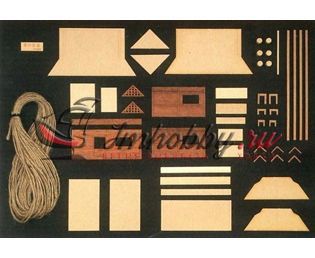 Модель практически полностью собирается из дерева. Все детали уже вырезаны, вам остаётся лишь снять их с листа и подровнять при необходимости. Окна и двери имитируются с помощью напечатанных на бумаге деталей. На бумаге также напечатана "тканевая" вывеска и флажок. Крыша покрывается паклей, которая прекрасно имитирует соломенное покрытие и хорошо выглядит даже вблизи. Кроме того, в комплекте есть наждачная бумага для обработки дерева. Инструкция на японском языке, однако весь процесс постройки подробно освещён более чем тремя десятками фотографий, поэтому сложностей при сборке возникнуть не должно.Спецификации:Длина: 150 ммШирина: 120 ммВысота: 102 мм