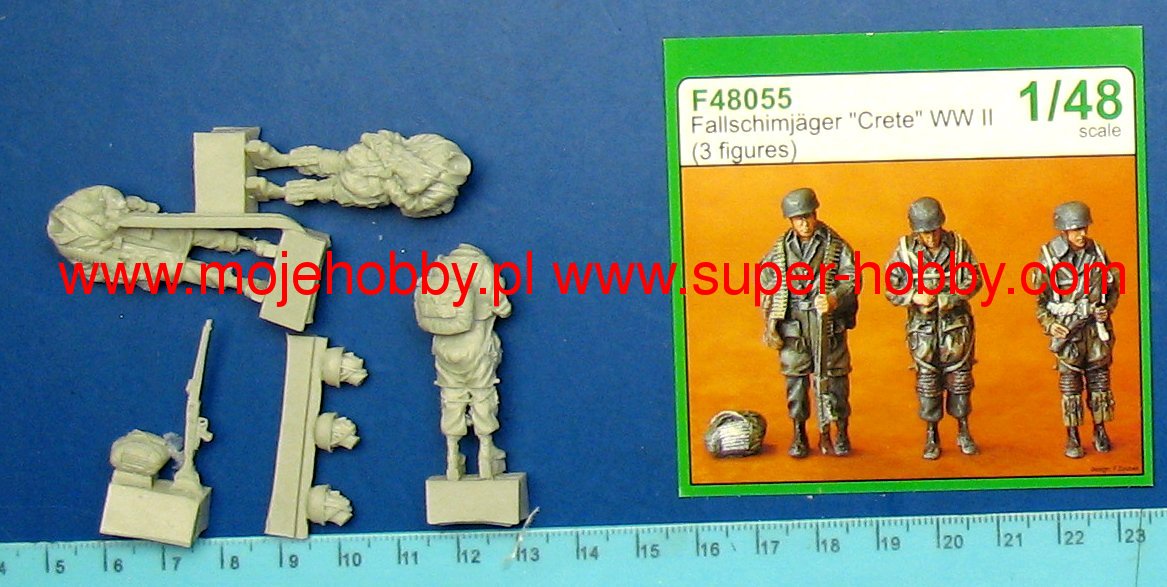 Fallschirmjäger to zbiorcze określenie niemieckich jednostek powietrznodesantowych z okresu międzywojennego i II wojny światowej. Pierwszy oddział spadochronowy zorganizowano w nazistowskich Niemczech w 1936 r. być może pod wpływem obserwacji poczynionych w toku radzieckich manewrów z roku poprzedniego. Pierwsze oddział spadochroniarzy powstał z inicjatywy Hermana Göringa i został przydzielony do Luftwaffe. Rok później (1937 r.) powstała pierwsza jednostka tego typu podporządkowana Wehrmachtowi, a dokładnie wojskom lądowym. W 1938 r. jednostki te połączono i rozbudowano tworząc 7. Dywizję Lotniczą pod dowództwem gen. Kurta Studenta. W jej skład wchodziła piechota spadochronowa, wojska szkolone do transportu szybowcami oraz piechota transportowana na pole walki samolotami. W toku II wojny światowej powstały kolejne jednostki Fallschirmjäger, m.in. w 1943 r. na bazie 7. Dywizji Lotniczej powstała 1. oraz 2. Dywizje Spadochronowe. W okresie 1939-1941 niemieccy Fallschirmjäger byli wykorzystywani zgodnie ze swym przeznaczeniem (np. w toku walk na Zachodzie Europy w 1940 roku), ale po wysokich stratach poniesionych w toku walk na Krecie w 1941 r. niemieckie wojska spadochronowe zaczęto wykorzystywać przed wszystkim jako elitarne jednostki piechoty, w której to roli sprawdziły się zresztą bardzo dobrze, zyskując wśród Aliantów przydomek „Zielonych Diabłów”.Operacja „Merkury” (niem. Unternehmen Merkur) to niemiecki kryptonim operacji powietrzno-desantowej przeprowadzone na Krecie w dniach od 20 maja do 1 czerwca 1941 roku. Po stronie niemieckiej w operacji wzięło udział ok. 22.000-24.000 żołnierzy, wspieranych przez ok. 1200 samolotów wszystkich typów pod dowództwem gen. Kurta Studenta. Po stronie alianckiej, walczyło ok. 42.000 żołnierzy (w tym min.: ok. 18.000 żołnierzy brytyjskich i ok. 11.000 żołnierzy greckich) pod dowództwem gen. Bernarda Freyberga. Warto dodać, że operacja „Merkury” to największa niemiecka operacja tego typu w toku II wojny światowej. Działania rozpoczęły się w dniu 20 maja 1941 r. od desantu powietrznego zrealizowanego przez 7. Dywizję Lotniczą oraz Luftlandesturmregiment w sile łącznie ok. 10.000 ludzi w północnej części Krety. Pomimo bardzo wysokich strat, niemieckim spadochroniarzom udało się umocnić w rejonie lotniska w mieście Maleme oraz skutecznie paraliżować ruch drogowy na tyłach wojsk alianckich. Generał Kurt Student, pomimo wysokich strat poniesionych 20 maja, zdecydował się kontynuować walkę i 21 maja koncentrować operacje właśnie w rejonie Maleme. W tym samym dniu Niemcy zajęli lotnisko nieopodal tego miasta, a w dniach 21-25 maja na Kretę przerzucono znaczną część 5 Dywizji Górskiej oraz sprzęt ciężki. Już 22 maja oddziały niemieckich spadochroniarzy oraz piechoty górskiej atakowały w kierunku wschodniej części wyspy. W dniach 26-28 maja, w wyniku chaosu decyzyjnego i słabego dowodzenia wojskami alianckimi, Niemcom udało się zająć dwa ważne miasta Chanii oraz Sud. Pomimo faktu, że strona niemiecka w niecałe dwa tygodnie opanowała bardzo ważną wyspę w basenie Morza Śródziemnego to jednak poniosła znaczne straty, szacowane na minimum ok. 3400 zabitych i ok.2600 rannych. Zniszczeniu lub uszkodzeniu uległo również 370 samolotów. Co oprócz modelu będę potrzebować do jego sklejenia?