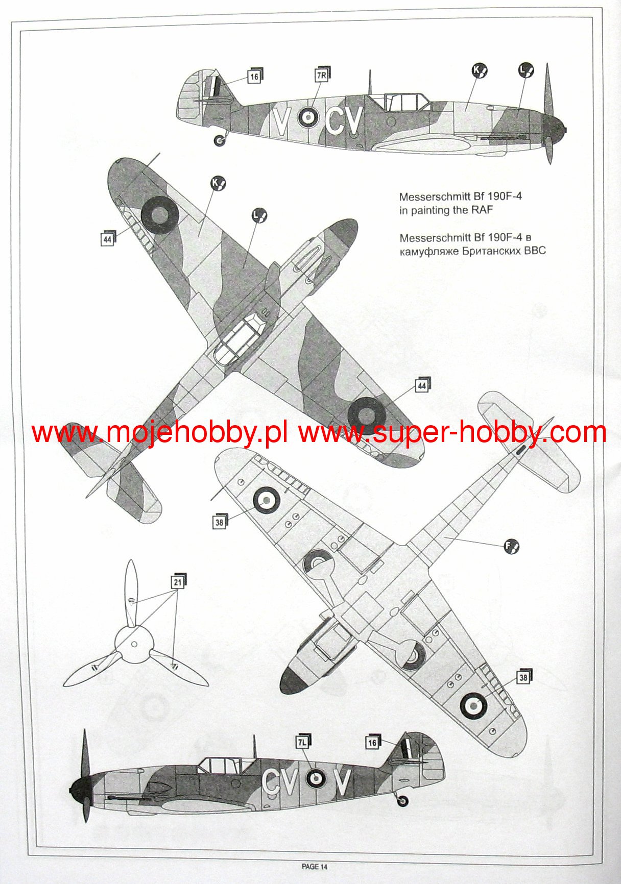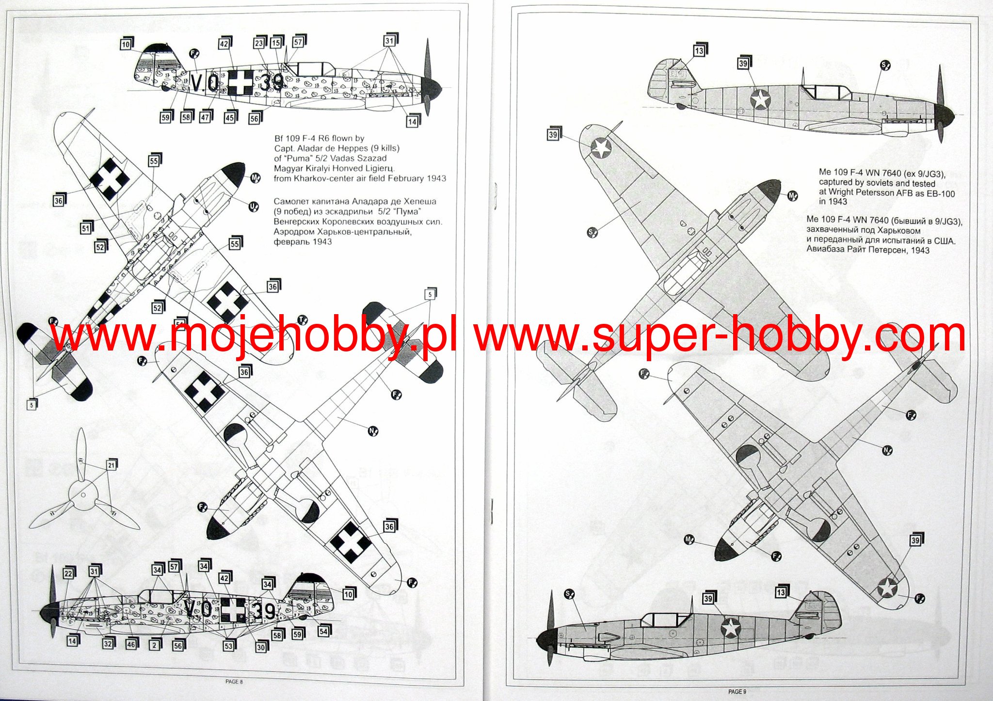 The Messerschmitt Bf-109 is a German metal-structure single-engine fighter in a low wing configuration with a classic tail. It turned out to be the basic and most produced Luftwaffe fighter during World War II. The flight of the prototype took place on May 29, 1935, and serial production continued in the years 1936-1945. In total, it is estimated that a total of about 35,000 Messerschmitt Bf-109 fighters of all varieties were produced, many of which ended up in the Czech and Israeli air forces after the war. The roots of the Bf-109 go back to the competition announced in 1933 by the Luftwaffe for a new fighter plane. In competition with the He-112, the Bf-109 project initially lost, but thanks to Willie Messerschmitt's intrigues, the project could continue and eventually he was the winner of the competition, becoming the Luftwaffe's primary fighter. Several main variants of the Bf-109 were developed in the course of production. The first pre-production series was the Bf-109B (Berta) with different versions of the Junkers Jumo 210 (A or Da) engine. They were tested in Spain from 1937 during the Civil War. The next version is the Bf-109C (Caesar). They had a different engine than the B version, and extensive armament consisting of two 20mm and 2 HP 7.92mm cannons. These machines also fought in the skies of Spain. The third version is the Bf-109D (Dora) with the Junkers Jumo 210 Da or Daimler-Benz DB 600 engine. It fought in the September campaign, but at the turn of 1939/1940 it was replaced by the E version. The most famous model was the Bf-109E (Emil) with a Daimler-Benz 601A or N engine. It was the first to use a three-blade, not a two-blade propeller. Bf-109E fought in the French campaign, over England, and in North Africa and on the Eastern Front. The ace who started his career on the Bf-109E was the famous Adolf Galland. The next version is the Bf-109F (Friedrich), which, according to the German pilots, was the most aerodynamically perfect. It sowed the changed shape of the fuselage, wings, cabin fairings, but no new engine was used. It was put into service at the turn of 1940/1941. As part of the development of the design, further Bf-109 specifications were developed, of which the G (Gustav) version was produced in the largest number of copies. The most important change increasing the machine's performance was the installation of a new 12-cylinder Daimler-Benz DB605A engine with 1475HP. The armament of the Bf-109G was a pair of 13mm machine guns located in the fuselage in front of the cockpit fairing, and the MG151 20mm or heavier MK108 30mm cannon. The last mass-produced version was the Bf-109K (Kurfirst), which production started in October 1944. A Daimler-Benz DB 605DB or DC unit was used as the engine. The Bf-109K was the fastest version produced during World War II, reaching up to 730 km / h. Apart from that, two versions were created - H and Z, but they were rather experimental versions and their mass production did not start. Subsequent improvements in propulsion and armament made the Messerschmitt Bf-109 one of the most dangerous fighters of World War II, and at the same time showed the great potential of the slightly angular airframe created by Willi Messerschmitt. Technical data (version Bf-109 G-6): length: 8.95 m, wingspan: 9.92 m, height: 2.6 m, maximum speed: 640 km / h, rate of climb: 17 m / s, maximum range: 850 km, maximum ceiling 12000m, armament: fixed - 2 MG131 13mm machine guns and 1 MG151 20mm cannon, suspended - 250 kg bombs, or 2 Wfr missile launchers. Gr. 21.