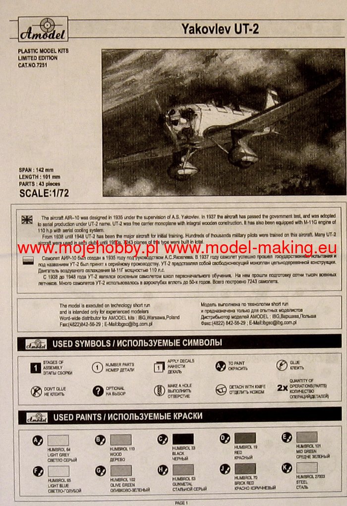 07251 YAKOVLEV UT-2 SOVIET WW2 TRAINER a&a models 1/72