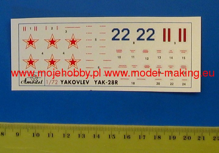 Jakowlew Yak-28 był odrzutowym, średnim samolotem bombowym, myśliwskim i rozpoznawczym o konstrukcji metalowej w układzie wolnonośnego średniopłata produkcji radzieckiej. Napęd zapewniały dwa silniki odrzutowe Tumanski R-11. Oblot prototypu miał miejsce w 1958 roku, a produkcja seryjna trwała w ZSRR w od 1959 do 1972 roku. Szacuje się, że w jej toku powstało ok. 1200 egzemplarzy tej maszyny. Jakowlew Yak-28, pomimo zewnętrznego podobieństwa do samolotu Yak-25, nie był oparty o jego konstrukcję, chociaż wykorzystywał niektóre jego podzespoły. W toku produkcji seryjnej powstało bardzo wiele wersji rozwojowych. Pierwsza z nich (Yak-28A) pozwalała na wykorzystywanie pocisków naprowadzanych radarowo. Krótko później opracowano wersję Yak-28I ze znacznie doskonalszą elektroniką oraz systemem radarowym. Powstała także wersja szkoleniowa (Yak-28U) z podwójnym kokpitem. W 1963 roku oblatano prototyp wersji obserwacyjnej (Yak-28R), bazującej w dużym stopniu na modelu Yak-28I. Od 1964 roku wprowadzano partiami do służby wersję myśliwską (Yak-28P), która mogła wykorzystywać nowoczesne jak na owe czasy pociski AA-3 Anab. Jakowlew Yak-28 nie był eksportowany, a w latach 80. XX wieku wycofywano ze służby poszczególne wersje tego udanego samolotu. Co oprócz modelu będę potrzebować do jego sklejenia?