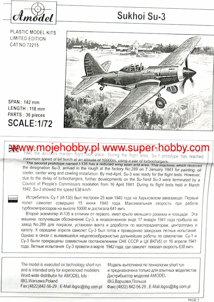 The Sukhoi Su-3 (another designation: I-360) was a Soviet prototype WWII fighter plane. The machine was constructed in the low wing configuration with the landing gear retracted in flight in the classic configuration. The flight of the prototype probably took place in 1941 or 1942, but the machine never entered production. The length of this aircraft was 8.42 meters with a wingspan of 10.1 meters. The drive was provided by a single 1100 HP WK-105P engine. It was assumed that the on-board armament would consist of a 23mm NS-23 cannon and two 7.62mm SzKAS machine guns. The Sukhoi Su-3 was developed as a new Soviet fighter aircraft intended for operations primarily at high altitudes. It was based on the Su-1 aircraft, which had been developed shortly before, but had a smaller wingspan and thus a smaller lifting area. A good pace of development of this aircraft was interrupted in June 1941 as a result of the German aggression against the USSR. The machine, along with a large part of the team working on it, was evacuated deep into Russia, and work on it resumed at the beginning of 1942 or at the end of 1941. However, due to problems with the engine turbochargers, the project was abandoned.