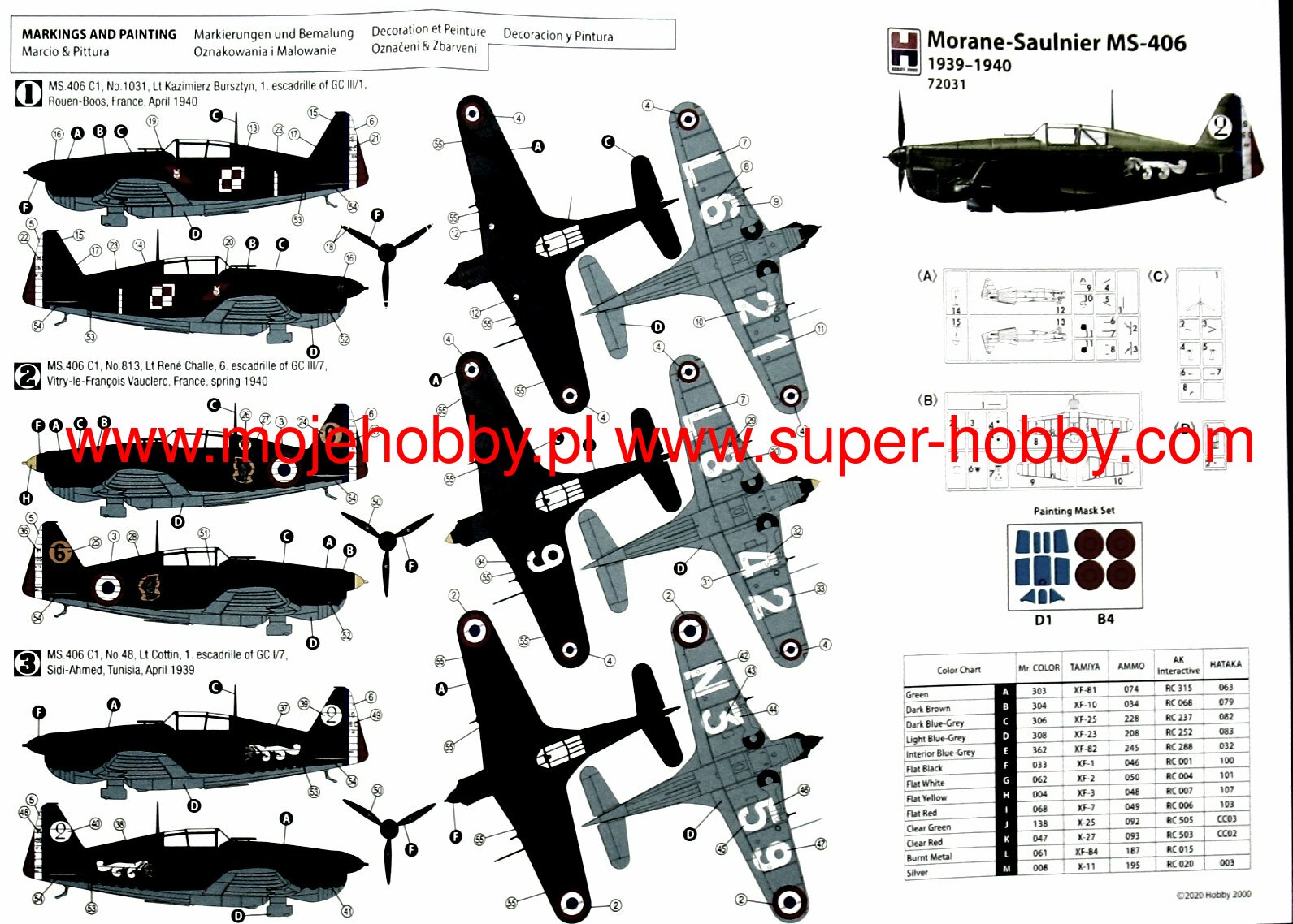 The Morane-Saulnier MS.406 is a French metal structure single-engine fighter in a low wing configuration with a classic tail. The flight of the prototype took place on July 8, 1935, and the entry into serial production took place in 1938. The combination of a good engine (Hispano Suiza 12Y31 with 860KM) and good aerodynamics resulted in a successful fighter capable of developing over 450 km / h. The serial version was called MS-406C1. The machine turned out to be a product sought after on international markets: interest in it was expressed, among others, by Poland, Lithuania, China, Turkey and Yugoslavia. After France's capitulation in June 1940, Germany sold the MS406 to Croatia (48 machines) and Finland (37 aircraft). The MS406 fought primarily in the French campaign, and later served in the Vichy air force and the Free French forces. Technical data: length: 8.17 m, wingspan: 10.62 m, height: 2.71 m, maximum speed: 486 km / h, speed of climb: 13 m / s, maximum range: 1000 km, armament: fixed - 2 machine guns MAC1934 cal .7.5mm and one 20mm Hispano-Suiza HS.404 cannon.