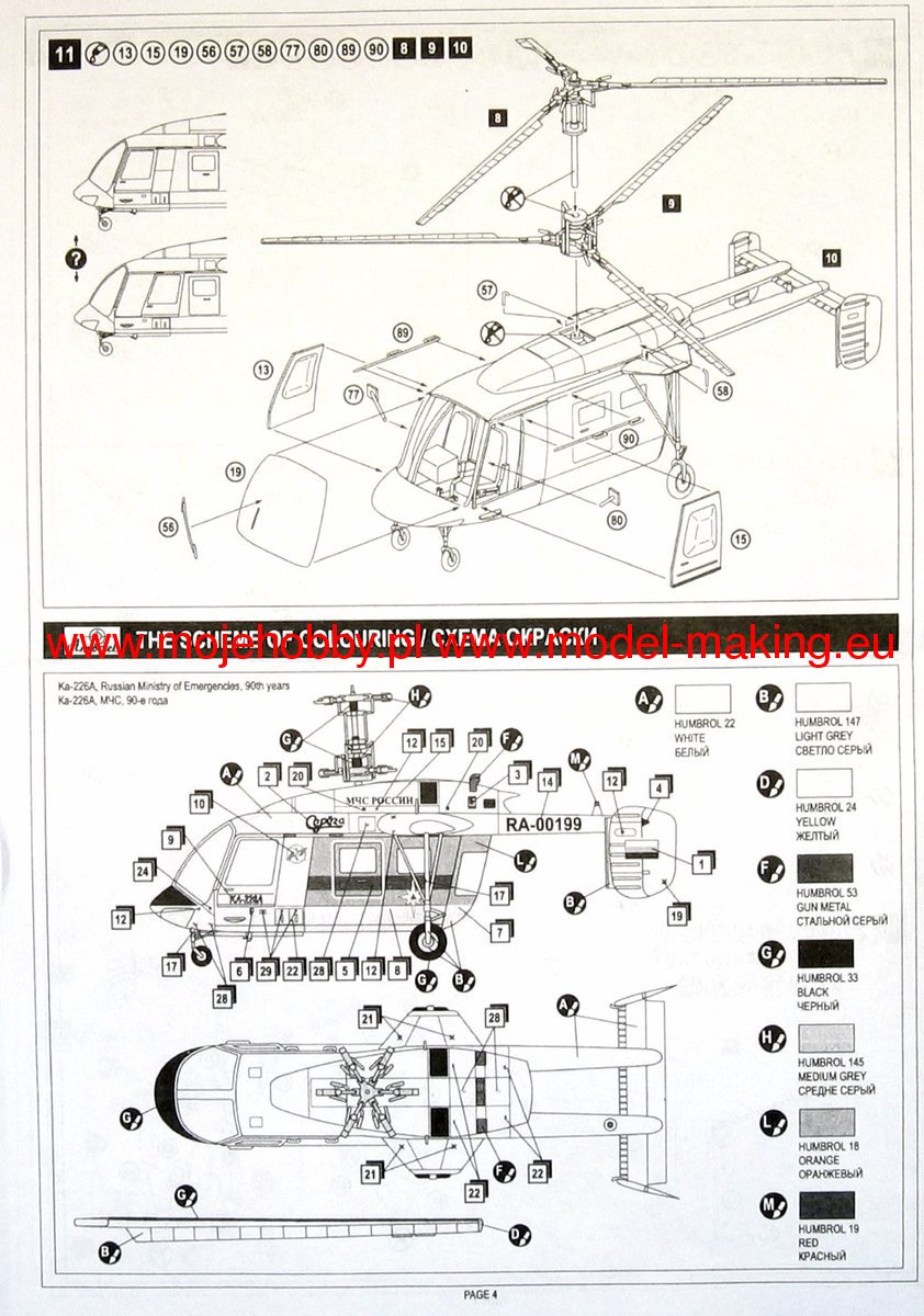 The Kamov Ka-226 is a modern Russian multi-role mixed construction helicopter with a fixed, four-support landing gear. The prototype flight took place in 1997. Serial production started in 2001. The drive is usually provided by two motors Rolls-Royce Allison 250-C20R2 with a power of 450 HP each, but it is also possible to use other engines, such as Turbomeca Arrius. The machine is 8.1 meters long and has a rotor diameter of 13 meters. The Ka-226 helicopter was developed in the design office in the classic coaxial arrangement for this manufacturer, with two rotors placed one above the other, without a rotor on the tail beam. The machine was created to replace the Ka-26 helicopter and it was assumed that it would perform similar reconnaissance and transport tasks or it would be used to transport passengers. Compared to its predecessor, the Ka-226 received significantly more powerful engines, improved aerodynamics, and received much richer avionics. The performance of the machine has also improved - especially the flight range. The main recipient of the helicopter is various uniformed services of the Russian Federation, but also India, which - according to 2018 data - they intend to undertake its license production.
