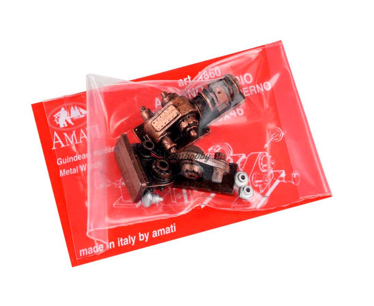 Модель электрической лебедки для моделей современных судов среднего и крупного масштаба. Металл, покрытие под бронзу. Набор состоит из трех деталей: центральная часть с электромотором и две боковые. Размер в основании 35х46 мм. Нет движущихся деталей.