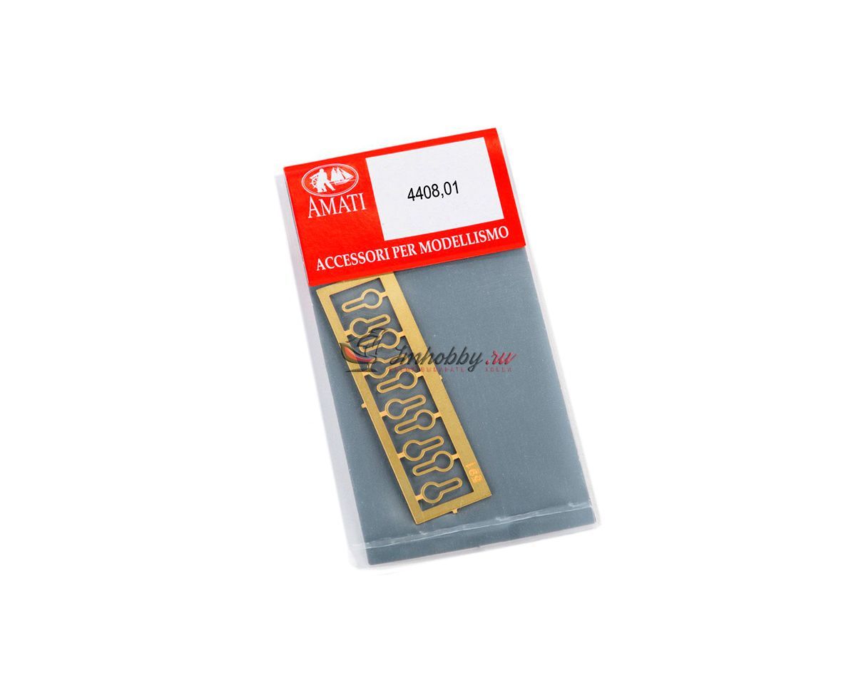 Вант-путенсы без крюков, выполнены из латуни методом фототравления. Количество 10 штук. Диаметр устанавливаемого юферса 3-3,5 мм.