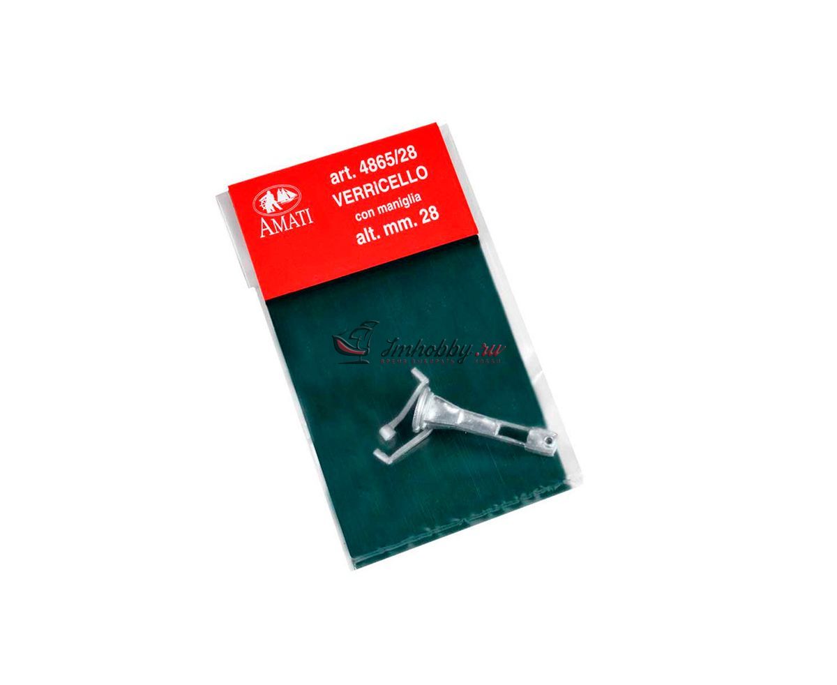 Лебедка с одной ручкой. Применяется на моделях современных кораблей и судов. Полная высота 28 мм, диаметр основания 9 мм. Металл. Собирается из нескольких деталей.