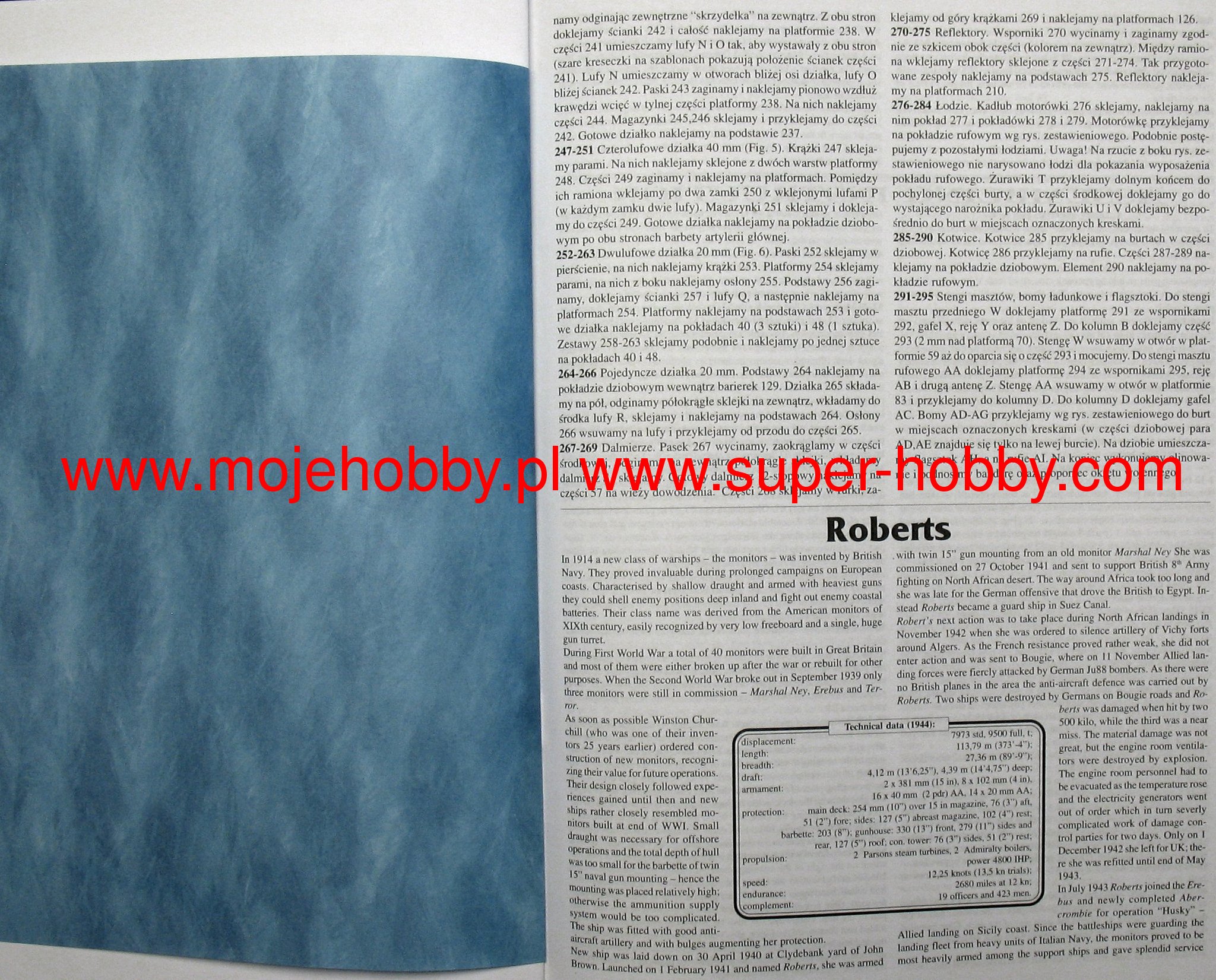 HMS Roberts (F40) was a British monitor from the Second World War. The keel for this unit was laid in 1940, and the launch took place in February 1941. The total length of the ship at the time of launching was 113.8 meters and a width of 27.4 meters. Full displacement reached approx. 8,000 tons, and the maximum speed was approx. 13 knots. The armament at the time of the launch consisted of two 381 mm guns, 8 100 mm guns and 20 20 mm guns. HMS Roberts it was one of the monitors in the class of the same name - that is, Roberts. Type O. Ships of this type were designed primarily to support amphibious operations, and to a much lesser extent for offshore operations. The main armament of these monitors came from Marshal-type units - dating back to the First World War. Roberts-class ships also had a relatively wide hull to ensure good stability of the vessel during firing. HMS Roberts took an active part in Operation Torch in late 1942, during which it was severely damaged. After refurbishment, it supported the Allied landings in Sicily in 1943 and in the Salerno area the same year. After ferrying to the British Isles, he participated in the Normandy landings in June 1944. The unit was in service - with breaks - until 1965.