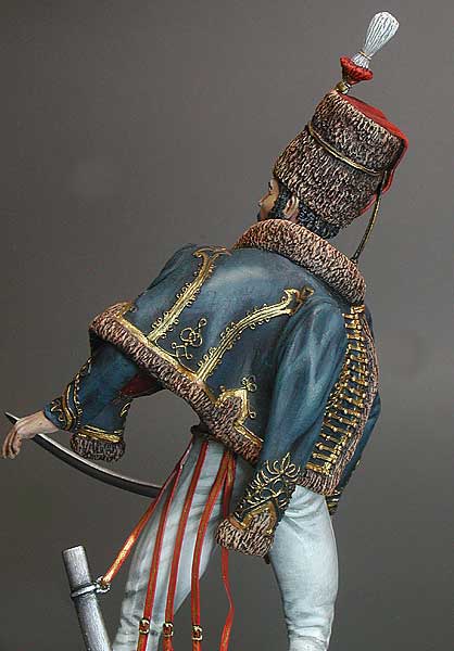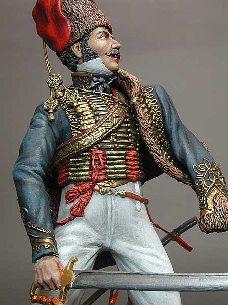 British hussar regiments during the Napoleonic Wars (1799-1815) were created by transforming some of the light dragoons regiments, which took place in 1806 and - in the case of the 18th Hussar Regiment - in 1807. In the British army, the hussars were perceived primarily as light cavalry, intended for reconnaissance, reconnaissance, insurance of the marches of their own troops, and in the second row they were perceived as cavalry intended to participate in battle. All British hussar regiments had blue uniform jackets, blue dolmans and furry low hats with tassels. Particular regiments differed in color, e.g. the color of the lapels or stripes. The main weapon of the British hussars was the saber Model 1796, while their firearms were pistols, cavalry rifles, and in the case of the 10th Hussars Regiment - Baker's threaded rifles. The regular regiment of British hussars usually consisted of 5 squadrons, one of which was treated as a rear. Theoretically, one squadron numbered about 180 people, but during the campaign this number decreased and during the Battle of Waterloo the squadron of British hussars numbered approximately 140-150 people on average.