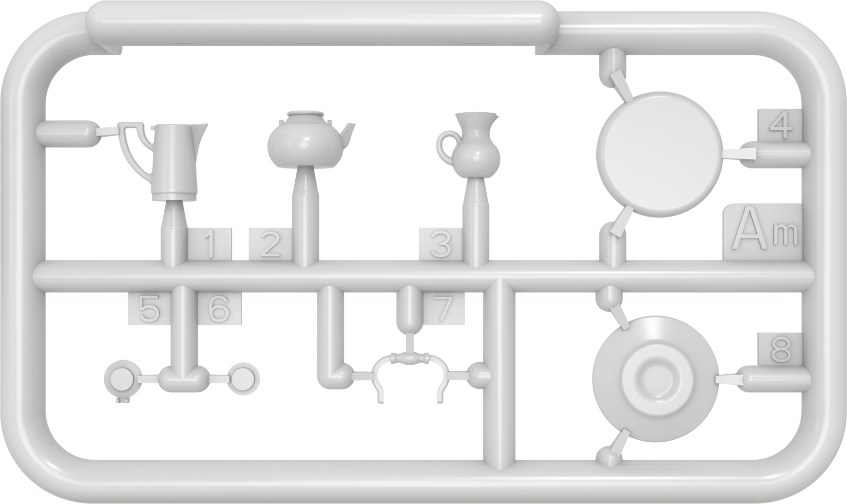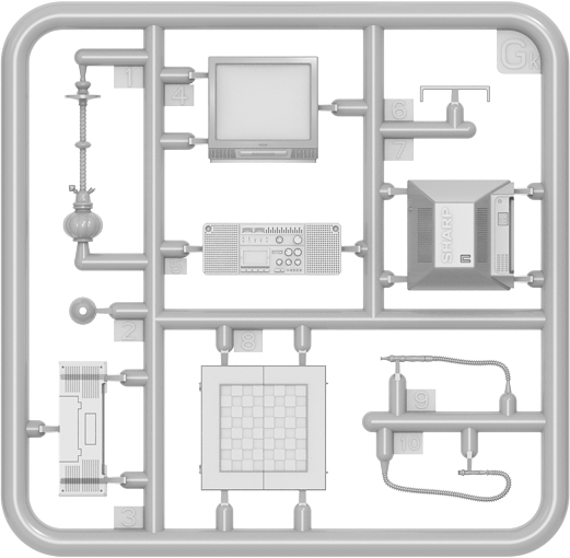 HIGHLY DETAILED PLASTIC MODEL KIT. KIT CONTAINS MODELS OF: TV, Radio, Hookah, Backgammon, Wooden Table, Kettles, Tray, Clay Decanter, Cups, Street Umbrella, Plastic Chairs and Tables.