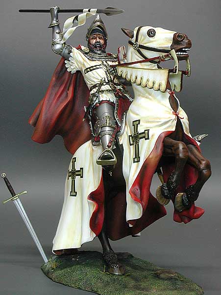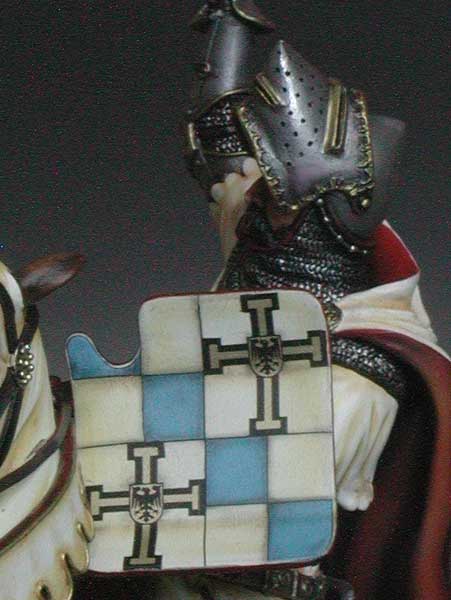 Ulrich von Jungingen he was born around 1360 and died in July 1410, at the age of around 50. He was the grand master of the Teutonic Order in the years 1407-1410. The future grand master entered the order probably quite early at the age of about 20. In 1396, he became the commander of Bałga, and later the great marshal and commander of Królewiec. Probably in his rapid promotion, his brother Konrad, who in the years 1393-1407 was a great master of the Order, had a lot of merit. It should be said, however, that both brothers had different visions of the foreign policy of the monastic state. While Konrad sought to strengthen the Order's position on the Baltic Sea in opposition to Denmark, or later - the Kalmar Union countries, Ulrich quickly abandoned this policy and focused on the fight against the Polish-Lithuanian state. A good example of this was the sale of the island of Gotland in 1409. He tried his best to prepare his country for the coming war with Poland and Lithuania, which went down in history as the Great War (1409-1411) ended with the First Toruń Peace. The most important event of that war was, of course, the Battle of Grunwald of July 15, 1410, during which Ulrich von Jungingen was killed in battle. His body, found after the battle by the Polish army, was sent to Malbork and laid there in the chapel of St. Anna at the Malbork Castle.Teutonic Order (full name: The Order of the Hospital of the Holy Virgin Mary of the German House in Jerusalem) probably dates back to the 3rd Crusade to the Holy Land (1189-1192), and its approval by the Pope is most often dated to 1198. Originally, the Order operated mainly in the Holy Land and guarded the safety of German pilgrims in these areas. However, with time, especially during the reign of the great master Herman von Salz, he began to create the foundations of his own statehood, initially in Transylvania, which failed completely, and later in the Chełmno Land (from 1226) and in the areas occupied at the expense of the pagan Baltic peoples, especially Prusai, with much more success. It is assumed that the conquest of the Prussians was completed by around 1280. Soon after (in 1309) the seat of the Grand Master was moved from Venice to Malbork in 1309. It was also then (1308/1309) that the Order seized all Gdańsk Pomerania at the expense of Poland. The military character of the Order in the thirteenth and fourteenth centuries was based primarily on well-trained and adhering to the iron discipline of religious brothers, most often armed with lances, double-edged swords, chain mail with elements of plate armor (later full plate armor) and helmets - often potted, less often so-called large helmets or visors. The external distinguishing feature of a religious brother on the battlefield was a black cross on a white background. However, at the side of these brothers, which rarely were several hundred in a given battle, there were also units of the so-called guests from Western Europe, i.e. knights who came to Prussia to look for a fortune, but also fighting (especially in the 13th century) for religious reasons. Moreover, the Teutonic army was formed by a knightly common movement (14th and beginning of the 15th century), and with time to an increasing extent - mercenary troops. The latter played a great role especially during the Thirteen Years' War (1454-1466). Undoubtedly, the army of the Teutonic Order was a difficult and demanding opponent, and the Battle of Grunwald (July 15, 1410), which became a legend of the Polish army, made such a big impression in Europe.