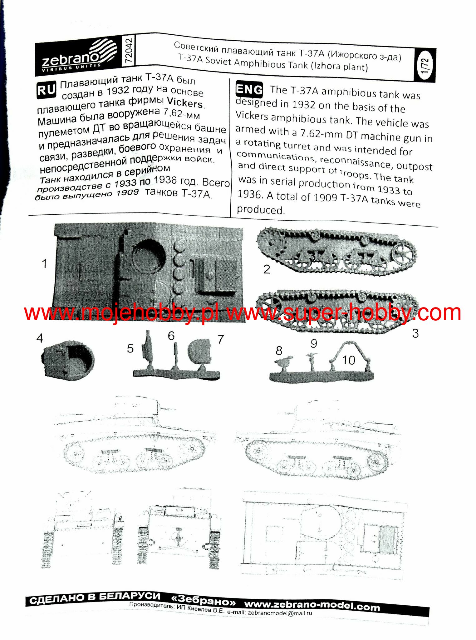 Дополнительная информация Cоветский малый плавающий танк. В комплекте детали для сборки и инструкция