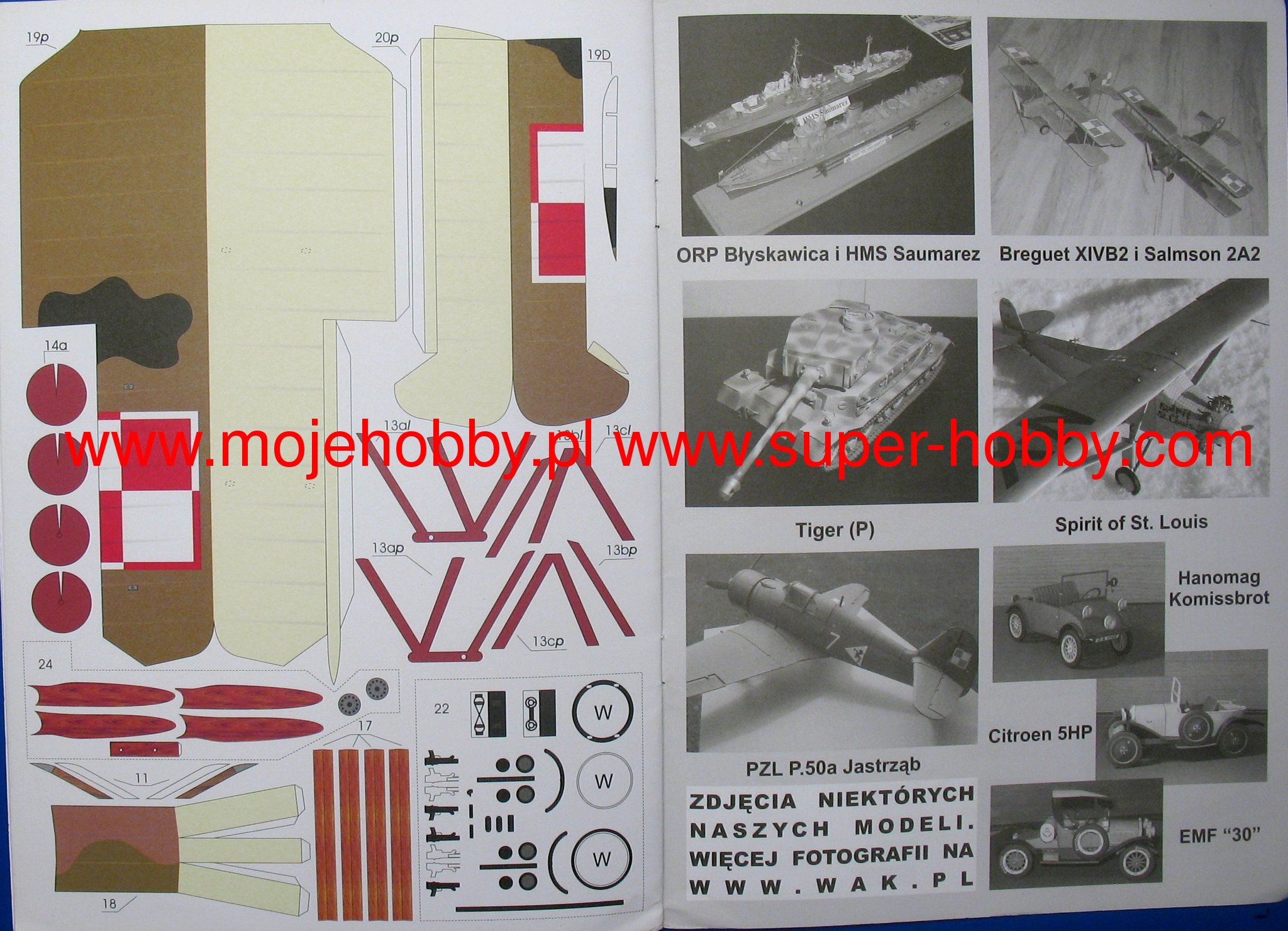 The Breguet 14 (or Breguet XIV or Bre.14) was a French reconnaissance aircraft and light bomber from World War I and the interwar period. The machine was built in a biplane system, it had a mixed structure and a classic - fixed undercarriage. The prototype flight took place in 1916, and serial production started in 1917. Approximately 8,000 aircraft of this type of all versions were created during it. The drive - in the B2 version - was provided by a single engine Renault 12Fe with a power of 300 hp. The deck armament consisted of three 7.7 mm machine guns. The machine could carry a load of bombs weighing up to 300 kilograms. The Breguet 14 was developed by Louis Breguet in response to the requirements set by the French military aviation for a new light bomber plane. The machine marked the return of this great aviation constructor to the plane with a towing propeller, as well as the large-scale use of duralumin, which was a novelty among aviation constructions of that time. The machine also had good flight range and performance. It is widely recognized as one of the best light bombers of the First World War. In the course of serial production of this successful aircraft, many of its development versions were created, including: Bre.14 A2 (reconnaissance version), Bre.14 B2 (bomb version) or Bre.14S (sanitary version). Airplanes of this type were used, inter alia, in the military aviation of Belgium, Spain and Poland. The last copies of this aircraft were withdrawn from the Polish airline service by 1932.
