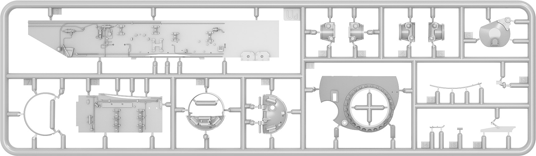 HIGHLY DETAILED MODEL WORCABLE TORSION BARS INDIVIDUAL TRACK LINKS INCLUDED PHOTO-ETCHED PARTS INCLUDED CLEAR PARTS INCLUDED ALL HATCHES CAN BE POSED OPEN & CLOSED DECAL SHEET FOR 3 MARKING OPTIONS MINE ROLLER KMT-5M INCLUDED