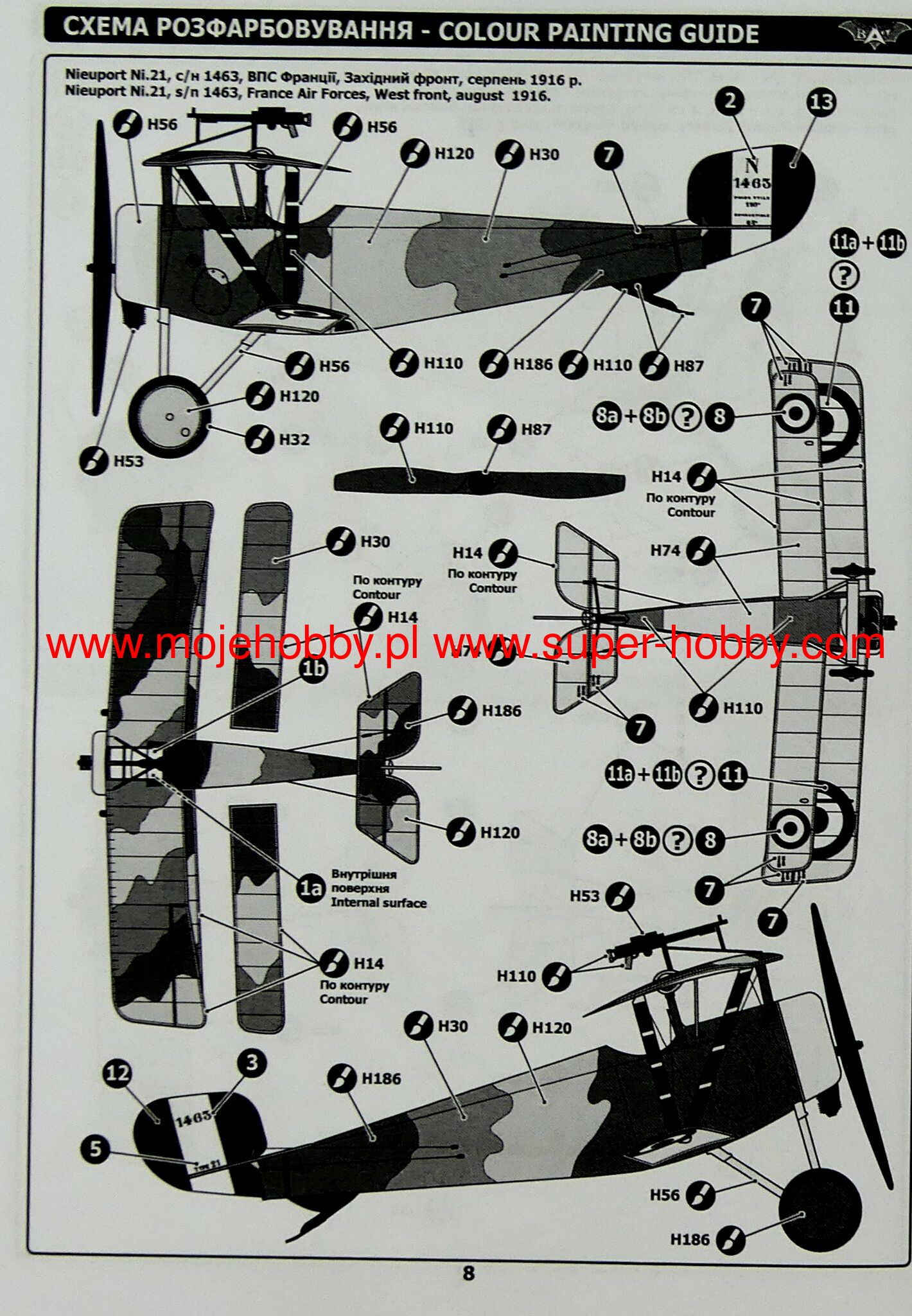 Nieuport 21 is a modernized version of the Nieuport 17 aircraft, used on a small scale in France, American and British aviation and on a large scale in Russia, where it was produced under license. It had the same engine as its predecessor, but produced less power. It featured enlarged wings and a generally reinforced structure. The machine was very maneuverable, but the lower wings tended to break off under very heavy loads such as quilting. He served in Russia both during World War I and during the Civil War. Technical data: length: 6m, wingspan: 8.16m, height: 2.4m, maximum speed: 140km / h, rate of climb: 4.16m / s, maximum range: 250km, maximum ceiling 4500m, armament: fixed-1 machine gun.