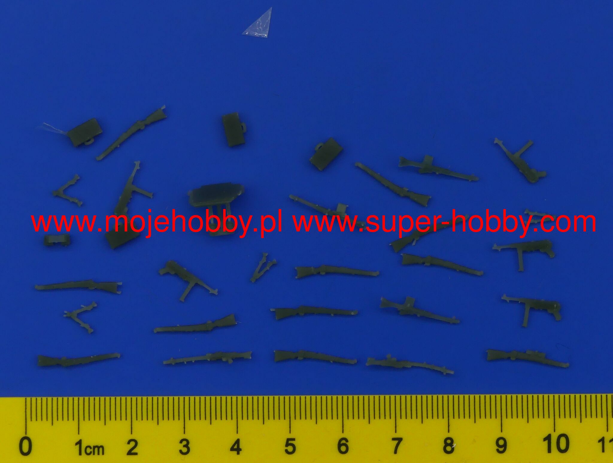 The Panzerschreck (full name: Raketenpanzerbüchse Panzerschreck) was a German anti-tank rocket launcher from the Second World War. In the RpZB 54 version, the weapon weighed 10.7 kilograms, the barrel was 164 centimeters long, and the effective range was up to 150 meters. The caliber of the gun was 88 mm. The Panzerschreck was created as an individual anti-tank weapon of the German infantry, being a specific development of the famous Panzerfaust. Compared to him, the Panzerschreck was more complicated - both in production and handling - but it was a reusable weapon, and had a better range and accuracy than the Panzerfaust 30 or 60 models. Bazookas. This weapon was produced from 1943, but it appeared on a larger scale only in 1944. It was used by German troops both on the Eastern Front, in Italy, and on the Western Front until the end of the war. It was also used by the armed forces of Finland and Hungary, among others.MP 40 (Ger. Maschinenpistole 40 ), commonly known as the "Schmeiser", is a German 9mm submachine gun from the World War II period. The first prototypes of this weapon were created in 1939, and serial production began in 1940 and lasted until 1944. The initial velocity of the projectile fired from this weapon was up to 380-400 m / s, and the theoretical rate of fire was up to 500-550 rounds per minute. Effective firing range it was up to 150-200 meters. The weight of the loaded weapon is 4.61 kilograms. The MP 40 was developed for the needs of the German armed forces in order to replace the MP 18 and MP 28 submachine guns obsolete in the late 1930s, but above all as a much more simplified and more reliable development of the MP 38 pistol, while retaining almost all of its advantages ballistic properties. However, the main design change concerned the breech chamber, which was much cheaper to produce, and at the same time minimized the risk of jamming the weapon. Ultimately, the MP 40 turned out to be a successful weapon, used by the Wehrmacht on virtually all fronts of World War II. It is worth noting that Heinrich Vollmer is widely regarded as the main designer of the MP 40, but Hugo Schmeisser and Berthold Geipel also contributed to the creation of this weapon. On the other hand, the production of the MP 40 was primarily the responsibility of the Steyr-Mannlicher plants, but also Erma Werke and Haenel.The MG42 (German: Maschinengewehr 42) is a German, light (universal) 7.92 mm machine gun from the Second World War. The first prototypes of this weapon were made in 1939, and serial production began in 1941 and lasted until 1945. The initial velocity of the projectile fired from this weapon was up to 740 m / s, and the theoretical rate of fire - up to 1,200 rounds per minute. The effective range of the shot from the weapon based on the bipod was up to 2000 meters, and the maximum range - up to 4700 meters! The weight of the weapon without a base or tripod is 11.6 kilograms. The MG42 machine gun was, in essence, a modernized version of the MG34 rifle introduced into service in 1934. Compared to its predecessor, it was characterized by a significantly simplified design, which allowed for faster and cheaper mass production. A large technological innovation was also used in the production process through the use of the so-called deep drawing technology. At the same time, the reliability of the new weapon was significantly improved. It is assumed that the MG42 was less susceptible to dirt or weather conditions than the MG34. At the same time, despite the simplification of the design, the MG42 retained virtually all the features of the MG34 - great ballistic properties, very high (or even higher!) Theoretical and practical rate of fire, as well as power supply from ammunition belts. All these elements made the MG42 one of the best rifles in its class during World War II. During the war, about 370,000 were produced. pieces of this weapon. It is worth adding that the MG42 became the prototype for the later West German MG1 and MG3. You can also often hear the opinion that the MG42 has become a kind of ancestor of modern universal machine guns.