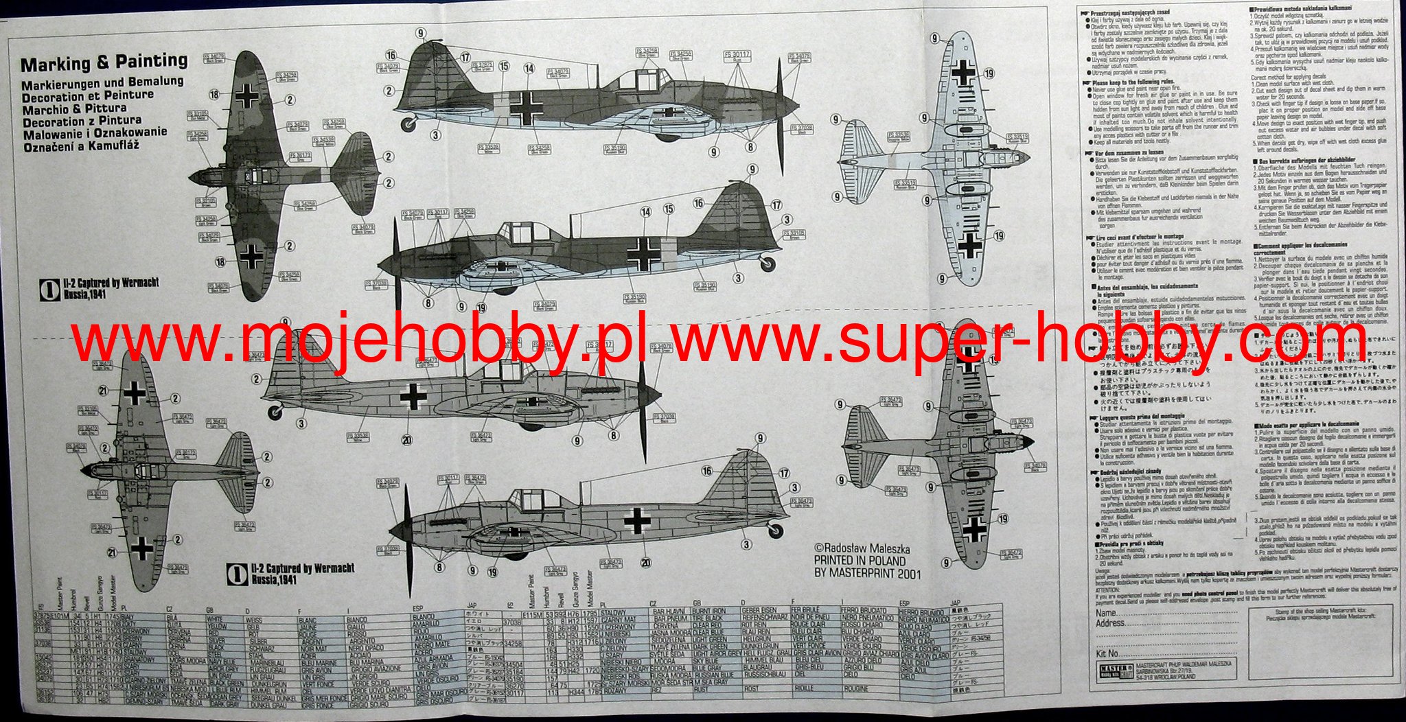 Ильюшин Ил-2 советский одномоторный штурмовик смешанной конструкции с низкорасположенным крылом и классическим хвостовым оперением, разработанный Сергеем Ильюшиным времен Второй мировой войны. Полет прототипа состоялся 2 октября 1939 г., а серийное производство началось в 1940 г. и продолжалось до 1945 г. Всего было создано целых 36 183 экземпляра этого великого самолета. Силовой агрегат представлял собой 12-цилиндровый поршневой двигатель Микулин АМ-38 мощностью до 1600 л.с. В основу концепции самолета Ил-2 было положено стремление создать тяжеловооруженный и тяжелобронированный штурмовик, предназначенный для уничтожения наземных целей противника и его бронетехники. Серийно выпускавшиеся самолеты имели броню от 4 до 6 мм вокруг двигателя и кабины. Таким образом, Ил-2 был устойчив как к огню из стрелкового оружия, так и к одиночным попаданиям из 20-мм пушек. После повышения качества подготовки экипажей и применения новой тактики Ил-2 стал самолетом, способным сеять хаос среди немецких панцеваффе. Не случайно немцы дали ему прозвище летающая смерть, а конструктор прозвал его летающим танком. Во время войны было создано около десятка модификаций Ил-2, самая важная из которых Ил2м3. Его экипаж состоял из двух человек - летчика и бортового стрелка, в качестве двигателя использовался агрегат Микулина АМ-38Ф (1700 л.с.) и вводился самоуплотняющийся топливный бак. Также были улучшены аэродинамические характеристики. Всего к 1944 году было построено 7377 машин этой версии. Ил-2 принимал участие во всех крупных сражениях на Восточном фронте от Москвы (1941 г.) через Сталинград и Курск (1942/1943 гг.), вплоть до Берлинской операции 1945 года. Технические данные (вариант Ил-2 обр.1942 г.): длина: 11,65м, размах крыла: 14,6м, максимальная скорость: 426км/ч, практическая дальность: 740км, практический потолок 6200м, вооружение: постоянное - 2 пушки WJ кал.23мм, 2 х 7,62-мм пулемёты СКАС, подвеска-8 неуправляемых ракет РС-82/РС-132, до 400 кг бомб.Примечание: Mistercraft часто меняет наклейки, поставляемые с моделями, без предварительного уведомления, и они могут отличаться от фотографий и описаний на нашем веб-сайте. Если вам нужна конкретная версия, сообщите нам об этом, введя соответствующий комментарий в поле для комментариев при размещении заказа.