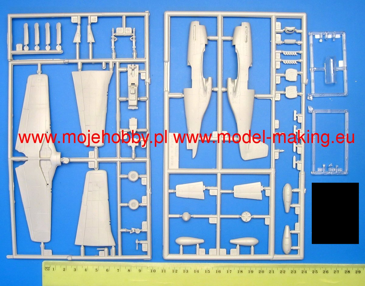 North American P-51 Mustang to amerykański, jednosilnikowy, samolot myliwski dalekiego zasięgu oraz samolot szturmowy o usterzeniu klasycznym i konstrukcji w pełni metalowej. Oblot prototypu miał miejsce 26 padziernika 1940 roku. P-51 Mustang zyskał reputację jednego z najlepszych, jeli nie najlepszego, myliwca z okresu II wojny wiatowej. Wymiana silnika Allison V-1710-39 pochodzšcego jeszcze z pierwszego projektu na motor Rolls-Royce Merlin (wersja P-51 Mustang Mk.Ia) sprawiła, że o Mustangu jak nigdy wczeniej można było mówić iż sięgnšł doskonałoci. Jednomiejscowy myliwiec zachwycał swojš prędkociš maksymalnš, zasięgiem, zwrotnociš, potęgš uzbrojenia. Kombinacja tych wszystkich najważniejszych dla oceny samolotu parametrów sprawiła, że Mustang sprawdzał się w praktycznie każdej powierzonej mu roli: zdobywał przewagę w powietrzu, eskortował, przeprowadzał misje zwiadowcze, atakował cele naziemne. O klasie konstrukcji wiadczy fakt, że Mustang pozostawał w czynnej służbie aż do lat 70-tych! Jednš z najważniejszych wersji był P-51D, stworzony na podstawie P-51B. Otrzymał on kroplowš owiewkę kabiny, zapewniajšcš wietnš widocznoć, otrzymał też nowy silnik- Packard V-1650-7, co wydatnie poprawiło osišgi. Dane techniczne (wersja P-51D): długoć: 9,83m, rozpiętoć skrzydeł: 11,28m, wysokoć: 4,08m, prędkoć maksymalna: 703km/h, prędkoć wznoszenia: 16,3m/s, zasięg maksymalny: 2755km, pułap praktyczny: 12800m, uzbrojenie: stałe- 6 karabinów maszynowych M2 kal.12,7mm , podwieszane-do 908 kg bomb lub 10 wyrzutni rakiet H.V.A.R kal.127mm. Uwaga: Firma Mistercraft często zmienia bez powiadomienia kalkomanie które są dołączone do modelu i mogą być one inne niż wynikające ze zdjęć i opisu na naszej stronie. Jeśli zależy Ci na konkretnej wersji powiadom nas o tym wpisując odpowiedni komentarz w polu uwagi podczas składania zamówienia. Note: Comany Mistercraft frequently changes, without any notice, the decals that come with the model, so they may differ from the photos and descriptions on our website. If you need a specific version, please let us know about that by entering the appropriate notice in the comments field when placing the order. Co oprócz modelu będę potrzebować do jego sklejenia?
