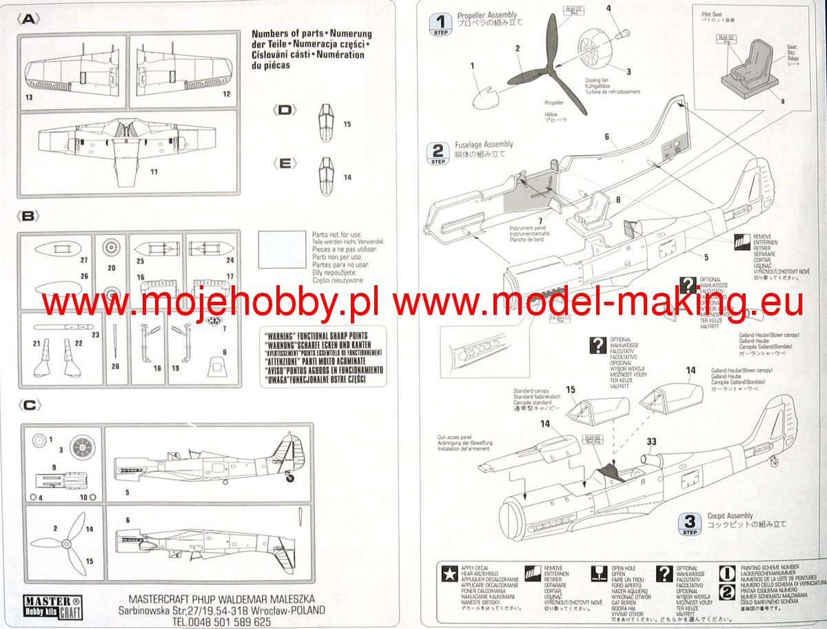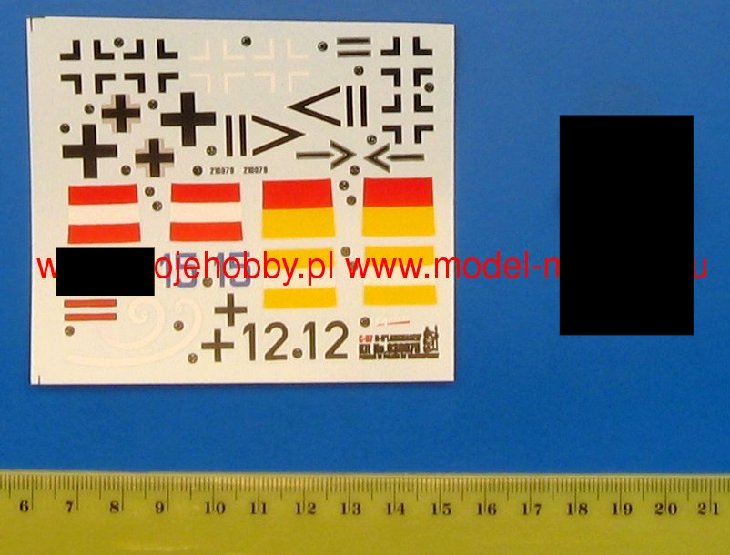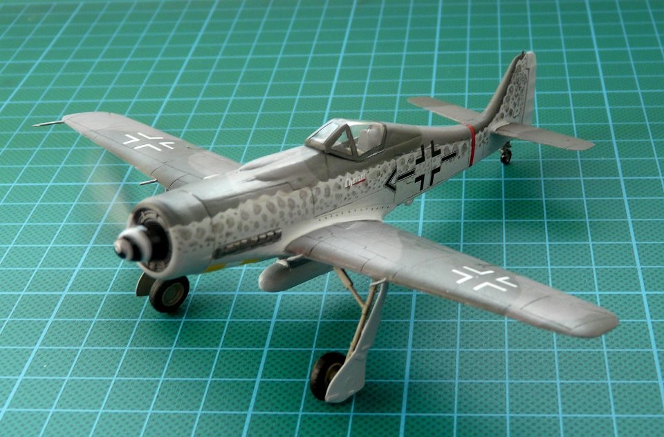 Note: Comany Mistercraft frequently changes, without any notice, the decals that come with the model, so they may differ from the photos and descriptions on our website. If you need a specific version, please let us know about that by entering the appropriate notice in the comments field when placing the order. The Focke-Wulf Fw-190 is a German, single-engine, full-metal fighter aircraft with a covered cabin in the low wing design of the Second World War. The pilots considered the Fw-190 to be a better aircraft than the Messerschmitt Bf-109. A self-supporting low wing with a working Fw-190 coating was commissioned by the Luftfahrtministerium, assembled in the fall of 1937. Kurt Tank submitted two propulsion proposals - the first with a liquid-cooled Daimler-Benz DB 601 engine, and the second with the new BMW 139 radial engine. The latter was chosen, and the work started in the spring of 1938 was headed by Obering R. Blaser. The first prototype of the Fw-190V1 was ready in May 1939, and it was flown in Bremen on June 1, 1939 by Captain Hans Sander. The second prototype, the FW-190V2, armed with two MG131 and two MG17 machine guns - all 7.92 mm caliber, was flew in October 1939. To reduce aerodynamic drag, both were equipped with a tunnel air inlet in the propeller cap, but problems with overheating of the engine resulted in a return to the proven NACA shield design. Before the tests of these prototypes began for good, the decision was already made to replace the BMW 139 engine with a stronger, but longer and heavier BMW 801. It required many changes, strengthening the structure and moving the cabin back, which later became a source of problems with the center of gravity. The advantage was the removal of problems with exhaust gas permeation and overheating of the cabin interior due to its direct vicinity to the BMW 139 engine. The third and fourth prototypes were abandoned, and the Fw-190V5 with the new engine was completed at the beginning of 1940. Later, it received wings with a wingspan enlarged by one meter (from the original 9.5 m), which made it 10 km / h slower, but it increased the rate of climb and improved maneuverability. It was marked Fw-190V5g, and the variant with the shorter wing was Fw-190V5k. The first seven machines of the Fw-190A-0 information series had a short wing, the rest - a longer one. The first operational unit equipped with the Fw-190 - 6./JG 26 stationed at Le Bourget, declared its operational readiness in August 1941 and from the first meeting of the new fighter with the British Supermarine Spitfire, its advantage over them became apparent. During the war, a dozen or so versions of this great plane were created. The machines of the "A" version, along with a dozen or so modernizations, served as fighter planes. The versions marked "B" and "C" were only prototypes of high-altitude fighters intended for fighting strategic bombers, but they did not enter into serial production. The "D" variant, as the only one of the Fw-190s, was powered by the new 1750HP Jumo 213A engine and was the German response to the P-51 Mustang. The new engine extended the fuselage by several dozen centimeters. This variant also performed mainly hunting and high-altitude fighter tasks. Numerous variants of the "F" version were used as fighter-bombers as direct support of the battlefield. The "G" version played the same role as the "F" version, but had a greater range. During the entire war, over 20,000 copies of this one of the best fighters of World War II were produced. Technical data (version Fw-190A-8): length: 9m, wingspan: 10.51m, height: 3.95m, maximum speed: 656km / h, rate of climb: 15m / s, maximum range: 800km, maximum ceiling 11410m , armament: fixed-2 MG131 13mm machine guns and 4 MG151 20mm cannons (2 MG 151 / 20E cannons for the D-9 version).