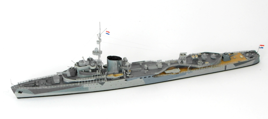 HNMLS Tromp was a Dutch light cruiser, keel laid in January 1936, launched in May 1937 and entry into service in 1938. The vessel was about 132 meters long with a width of about 12.4 meters. Standard displacement did not exceed 3,500 tons, and the maximum speed was up to 33 knots. The armament of the ship consisted of: 6 150 mm guns, 4 75 mm guns and 8 40 mm AA guns. The unit could also set mines and perform air operations with a single seaplane. HNMLS Tromp was the first of two entities belonging to the class with the same name - ie Tromp. Units of this type were built to protect Dutch possessions in what is roughly what is now Indonesia, and their main potential enemy was seen in the light naval forces of the Empire of Japan - especially the destroyers of this country. HNMLS Tromp was constructed in accordance with these assumptions, as a result of which a relatively fast unit was created, with good artillery armament. At the time of the accession of the Netherlands to World War II on the side of the Allies in May 1940, HNMLS Tromp carried out convoy tasks in the Indian Ocean and in the area of today's Indonesia, and in February 1942 it became part of the international team of ABDA ships operating in the area of the Dutch East Indies. . The unit took part in the battle (battle) in the Badung Strait, in the course of which it received numerous hits and was seriously damaged. As a result, it was sent for renovation to Australia. In its course, the anti-aircraft armament of the ship was also strengthened. Following these actions, HNMLS Tromp carried out convoy missions in the Indian Ocean and other waters surrounding Australia. From January 1944, the unit operated within the British Eastern Fleet, operating mainly from Ceylon. In 1945, HNMLS Tromp covered, inter alia, Allied landings in Borneo. The unit returned to the Netherlands in May 1946. Ten years later, it was withdrawn from active service, and in 1968 it was removed from the fleet list.