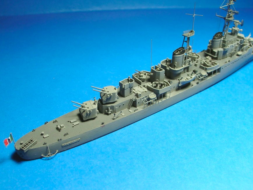 Сан-Марко (первоначально Джулио Германико) был итальянский легкий крейсер, а затем эсминец, под которым Закладка киля состоялась в апреле 1939 года, а спуск на воду состоялся в июле 1941 года. Общая длина корабля на момент спуска на воду составляла 142,2 метра, а ширина 14,4 метра. Полное водоизмещение составляло около 5600 тонн, а максимальная скорость до 39 узлов. В 1950-е годы вооружение включало: 3 спаренных 127-мм орудия, одиночную пусковую установку глубинных бомб Менон и 20 40-мм зенитных автоматов Бофорс. San Giorgio первоначально назывался Giulio Germanico и был спущен на воду как легкий крейсер класса Capitani Romani. Однако ко времени подписания Италией перемирия в 1943 году корабль не был достроен. Недостроенный агрегат попал в руки немцев, которые его потопили. После окончания Второй мировой войны выяснилось, что обломки судна находятся в очень хорошем состоянии. Было принято решение поднять его со дна и отремонтировать, и вся эксплуатация началась в 1950 году. Наконец, в установке по отношению к первоначальным предположениям значительно усилили зенитное вооружение, также было модернизировано радиоэлектронное оборудование, изменено основное вооружение. Судно, уже известное как Сан-Марко, вступило в строй в 1956 году и оставалось в строю до 1971 года.