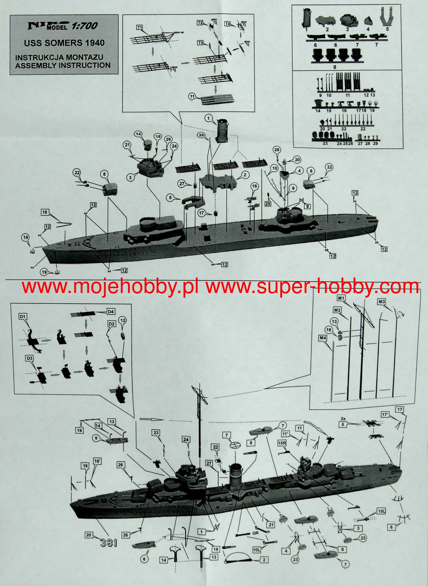 The USS Somers (DD-381) was an American destroyer, the keel of which was laid in June 1935, launched in March 1937, and was completely completed in December of the same year. The total length of the ship at the time of launching was 116.1 m, width 11.25 m, with a full displacement of about 2,800 tons. The maximum speed was up to 35 knots. The armament of the unit at the time of launching included: 8 127 mm guns, 2 quadruple 28 mm anti-aircraft guns and 12 533 mm torpedo tubes. In the course of World War II, the weapons were subject to changes - especially anti-aircraft weapons were strengthened. USS Somers (DD-381) was the first of five Somers-class destroyers. Units of this type were created as part of the US Navy expansion program in the second half of the 1930s and it was assumed that they would act as the leaders of the destroyer flotilla. Therefore, they put emphasis on the development of artillery and torpedo armaments. It was also assumed that they would serve primarily in the Atlantic. Ultimately, very heavily armed ships with good performance and sea bravery were created. However, they had some problems with stability and incorrect setting of the center of gravity. In the course of renovations and modernizations, efforts were made to correct these errors, but with varying results. USS Somers (DD-381) was built at the Federal Shipbuilding and Drydock Company in Kearny, NJ. During World War II, the unit operated mainly in the Atlantic Ocean, fighting German raiders and carrying out convoy tasks. In 1943, she indirectly secured the participation of President Franklin Delano Roosevelt at the Casablanca Conference. In June 1944, USS Somers (DD-381) took part in the Allied landing in Normandy, and in August of the same year supported landing operations in southern France as part of Operation Dragoon. Until the end of 1944, it operated in the Mediterranean, and in early 1945 it returned to the cover of convoys in the Atlantic. At the end of 1945, the unit was withdrawn and shortly afterwards sold for scrap.