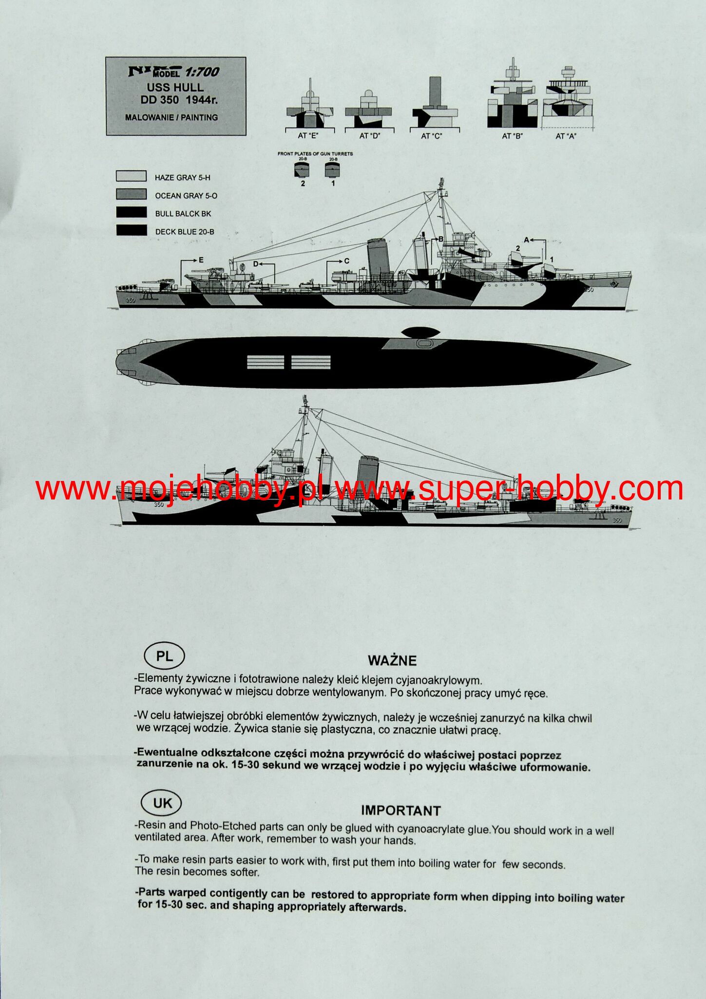 The USS Hull (DD-350) was an American destroyer, the keel of which was laid in March 1933, launched in January 1934, and was completely completed in January 1935. The total length of the ship at the time of launching was 104 m, width 10.44 m, with a displacement of about 1,400 tons. The maximum speed was up to 36 knots. At the time of the launch, the unit was armed with: 5 127 mm guns, 4 12.7 mm anti-aircraft machine guns and 8 533 mm torpedo tubes. In the course of World War II, the weapons were subject to changes - especially anti-aircraft weapons were strengthened. USS Hull (DD-350) was one of eight Farragut-class destroyers - America's first-class destroyers fully built after the end of the Great War. In relation to the so-called The "four-tailed boats" was longer, had better seafaring, its artillery armament was strengthened, and the engine room and, in fact, the entire propulsion system were significantly changed. On the other hand, much too weak anti-aircraft armament was used, a drawback that was fixed in the course of subsequent modernizations carried out during World War II. USS Hull (DD-350) was built at the New York Navy Yard and operated primarily in the Pacific before the outbreak of the war. He was at the Pearl Harbor base during the Japanese attack on December 7, 1941. The unit later participated in the early stages of the struggle on Guadalcanal (August 1942), and from February 1943 operated in the Aleutian region. At the end of 1943, USS Hull (DD-350) returned to the South Pacific, participating in the landing on Saipan and the Battle of the Philippine Sea (June 1944). The unit sank as a result of entering typhoon Cobra on December 18, 1944.