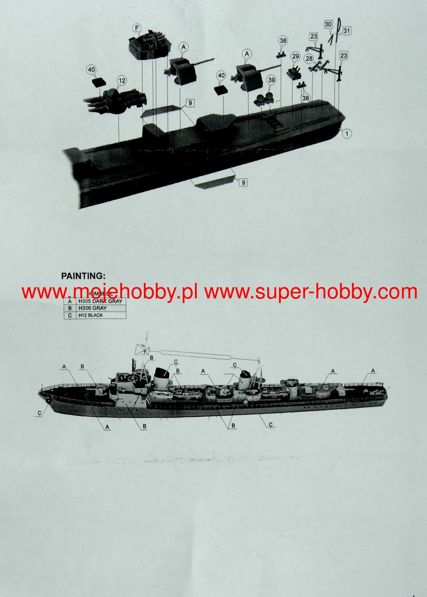 Type 39 (Elbing class) is the name of the German torpedo boat class (Ger. Flottentorpedoboot) that entered service in the German Kriegsmarine in 1940-1944. A single ship of this type was 102.5 meters long and 10 meters wide. Full displacement did not exceed 1750 tons, and the maximum speed was around 33-34 knots. The armament consisted of: 4 single 105mm cannons, 2 twin 37mm anti-aircraft guns, 1 quadruple AA cannon. 20 mm caliber, 2 triple 533 mm torpedo tubes, 4 depth charge launchers and up to 60 min. The Type 39 torpedo boats differed significantly from the previous Type 35 and 37 Kriegsmarine torpedo boats. First of all, they were significantly larger, much better armed, also had better ZOP (anti-submarine warfare) capabilities and turned out to be much more versatile ships. In fact, their size and combat capabilities corresponded to small destroyers. The earliest Type 39 ships to enter service chronologically were dispatched to France to cover their own U-boats returning from combat voyages, as well as to perform combat patrols in the waters of the Bay of Biscay and the English Channel. They were also used to build minefields. Ships of this type also took part in the naval battle of Sept-Iles in October 1942 and in the Battle of the Bay of Biscay in December 1943. they supported the actions of German troops on land. In April and May 1945, the surviving torpedo boats of this type were involved primarily in the evacuation of civilians fleeing the Red Army. Out of 15 ships built, only 4 survived the war by the end of the war. Three of them remained in French service until 1954-1955, and one in the USSR Navy until 1956.