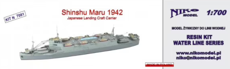 The Shinshu Maru was a Japanese Amphibious Assault Ship, the keel of which was laid in 1933, launched in March 1934, and commissioned in November of the same year. The total length of the ship at the time of launching was 144 m, breadth 22 m, and full displacement - 7,100 tons. The maximum speed reached 20-20.5 knots. The ship was armed with 4 75mm Type 88 AA guns and 4 AA cannons. cal. 20 mm. Shinshu Maru was developed not for the Imperial Japanese Navy, but for the Japanese Army, and its main purpose was to support amphibious operations. At the time of launching, the vessel was in fact the only ship of this type in the world and contained many valuable innovations. Shinshu Maru was able to carry out amphibious operations with up to 29 Daihatsu Landing Craft, 25 Shohatsu barges and 4 Soukoutei (or: AB-tei). The unit was also adapted to carry out air operations with the use of seaplanes, but these possibilities were never used. One might risk saying that Shinshu Maru was - conceptually! - the ancestor of such large landing ships as modern Mistral, Tarawa or America class units. Shinshu Maru came to rest on the ocean floor as a result of damage sustained in an Allied air attack on January 3, 1945 and a slightly later torpedo attack by the USS Aspro (SS-309).