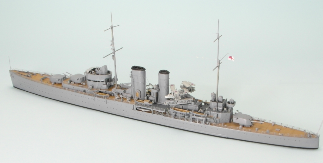 HMS Exeter (68) was a British heavy cruiser of the interwar period and World War II. The keel was laid for this unit in 1928, the launch took place in July 1929, and the entry into service with the Royal Navy - in 1931. The total length of the ship at the time of launching was 175.3 meters, total width 17.7 meters, and full displacement - about 10,600 tons. The maximum speed was around 31 knots. The on-board armament at the outbreak of World War II included, among others: 6 203 mm guns, 4 102 mm guns and 2 40 mm cannons. The unit could operate two seaplanes. HMS Exeter (68) was one of the British York-class heavy cruisers. Cruisers of this type arose as the de facto modernized and reduced County class. Compared to her, they had, above all, weaker weapons, but still had good performance and high seaworthiness. They were also characterized by better armor - especially artillery turrets - and a much better layout of the space on the ship, especially in the bow superstructure. In general, York-class cruisers were viewed as successful units with considerable combat value. In the interwar period, HMS Exeter served in the Caribbean Sea, the Mediterranean Sea and the South Atlantic. His combat career in World War II began very fruitfully, because in December 1939 he took part in the battle at the mouth of the La Plata River, as a result of which the German pocket battleship Admiral Graf Spee was sunk. As a result of this battle, however, it suffered serious damage and was under renovation until the beginning of 1941! At the end of that year, he was sent to the Far East, and in 1942 he took part in the Battle of the Java Sea, as a result of which he was sunk, on March 1 this year.