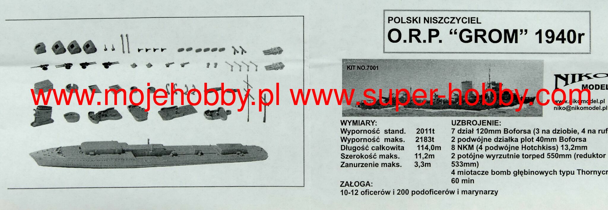 7001 POLISH DESTROYER GROM 1940 nik-models 1/700