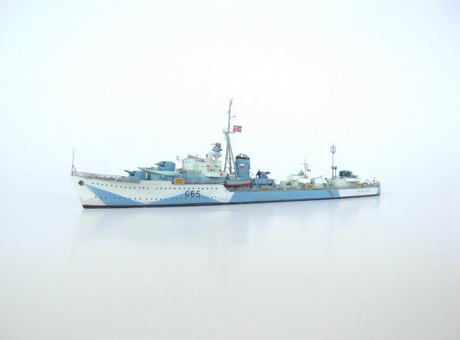 ORP Piorun (original name: HMS Nerissa) was a British and later Polish destroyer from the Second World War. The keel for this unit was laid in December 1939, and the launch took place in May 1940. The total length of the ship at the time of launching was 108.7 meters and a width of 10.95 meters. Full displacement reached approx. 2,400 tons, and the maximum speed was approx. 35-36 knots. The armament included 6 120mm universal guns in three twin turrets, a single 102mm cannon, and 4 40mm cannons. ORP Piorun was one of the eight N-class destroyers, which was very similar to the J and K types. The units of this type were built to complement the Tribal-class destroyers. Compared to them, it was a bit smaller and had a slightly worse seafaring performance, but they had better balanced weapons and were cheaper to produce. The unit entered service in the Royal Navy under the name of HMS Nerissa in 1940, but in November of the same year it was transferred to the Polish Navy in exchange for ORP "Grom" lost at Narvik. Under the Polish flag (already as ORP Piorun), the ship served mainly in the cover of Atlantic convoys - in total, she escorted 81 convoys! In May 1941, he also took part in the sinking of the German battleship Bismarck. The ship also took part in the Allied landings in Sicily in July 1943 (Operation Husky) and in the Normandy landings in June 1944. After World War II, the unit was returned to the Royal Navy and remained in service until 1955 under the name HMS Noble.