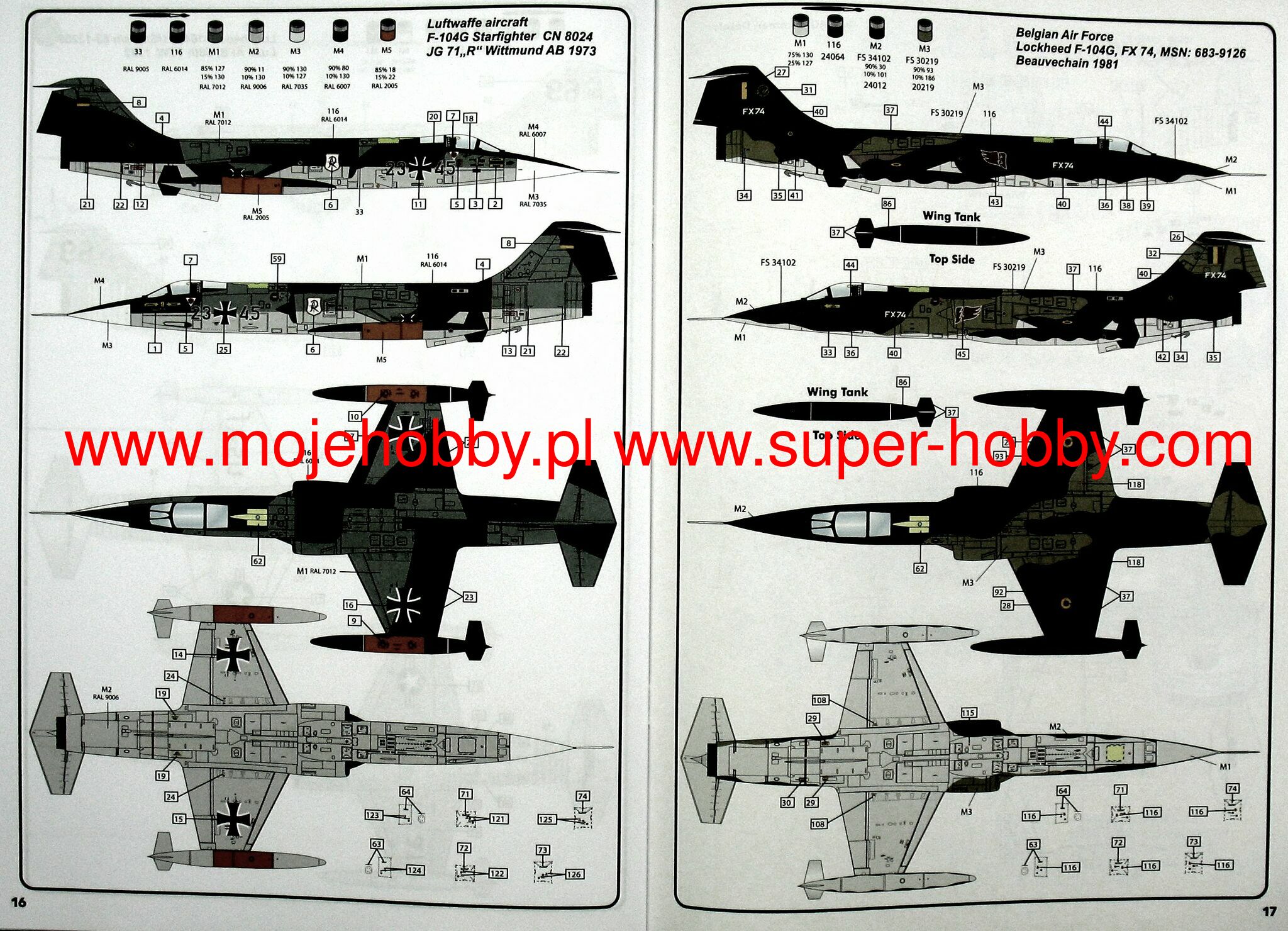 The Lockheed F-104 Starfighter is an American supersonic interceptor and fighter-bomber. The F-104 is the fruit of the American experience of the Korean War, where most air victories were achieved in one surprising blow. This, in turn, meant that the new USAAF fighter should, above all, be fast and have a high rate of climb. It is also a reflection of the concept of "plane-missile with a man on board", which also functioned in the Soviet and British aviation in the second half of the 1950s and early 1960s. The flight of the prototype, created by Clarence "Kelly" Johnson, took place on February 7 1954, and entry into line units began in 1958. The serial plane was powered by a General Electric J79 turbojet engine with thin, trapezoidal wings and R21G / H radar. The F-104 was produced in several versions. The basic one is the F-104A, acting as a fighter plane, and the F-104C, i.e. a fighter-bomber. Subsequent versions were primarily produced for export. F-104G, with a more powerful J79-GE-11 engine and improved avionics went to Germany, the CF-104 is a license version of the F-104G, but with the J79-OEL-7 engine, produced in Canada, the F-104S is an aircraft produced in Italy licensed with the J79-GE-19 engine. Finally, the F-104J was produced for the Japanese Air Force with the J79-IHI-11A engine at Mitsubishi plants. The plane designed to train test pilots was the NF-104 Rocket Starfighter. The F-104 was an airplane that was incredibly difficult to pilot and "unforgiving" mistakes. It has suffered many crashes - in the german aviation alone, 110 of the 238 F-104 planes were crashed! Technical data (version F-104G): Maximum speed: 2137 km / h, speed of climb: max. 254 m / s, maximum altitude 27,400 m, maximum range: 2,920 km, armament: fixed - one 20mm six-barrel M61A-1 cannon, suspended - up to 1,814 kg of cargo.
