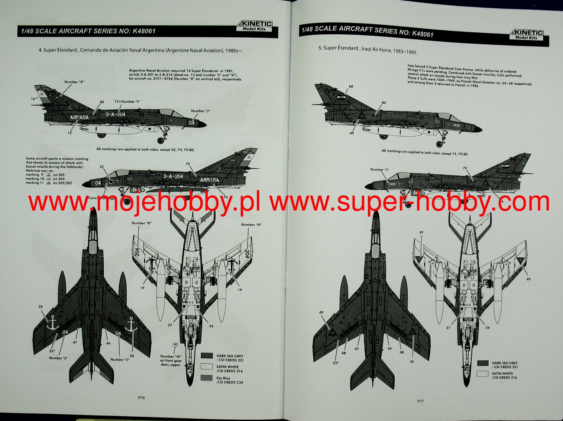 The Dassault-Breguet Super Etendard is a French, single-engine, airborne fighter-attack aircraft, flown on October 28, 1974. The drive is provided by a single SNECMA Atar motor with a thrust of 4900 daN. The machine was created as a modernization of the Dassault Etendard IVM aircraft. Two versions of the Super Etendard were created: "M, which is a fighter-attack model, and" P "- a reconnaissance aircraft. Serial production of this machine was small: 71 were produced for the use of the French Navy, 14 were exported to Argentina, and 5 to Iraq. took part in the war for the Falklands, where they sunk the destroyer HMS Sheffield, HMS Atlantic Conveyor and seriously damaged HMS Glamorgan using AM-39 Exocet II missiles. , wingspan (maximum): 9.6m, height: 3.86m, maximum speed: 1.15Ma, rate of climb: 102m / s, ceiling practical: 16000m, operating radius: 720km, armament: fixed two cannons DEFA 553 cal .30mm, suspended - up to 2100 kg load.