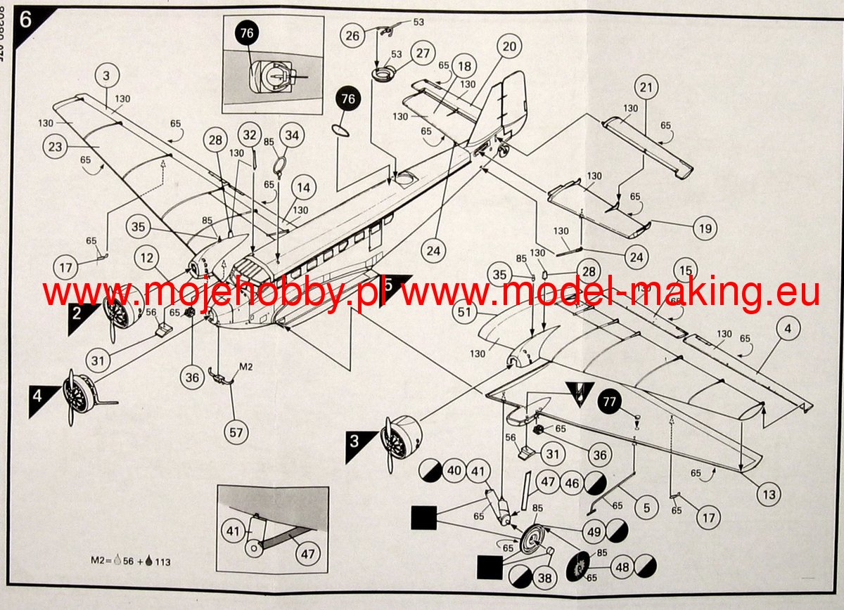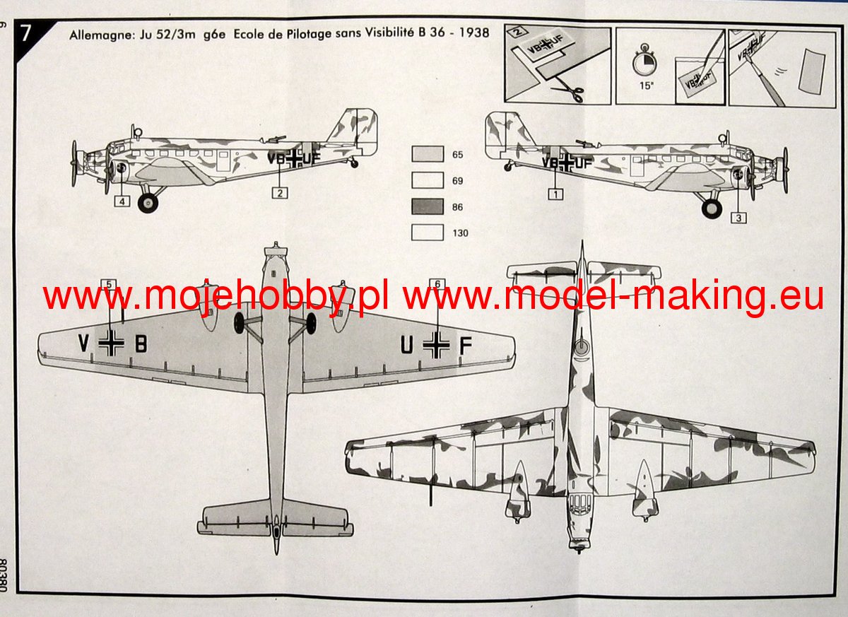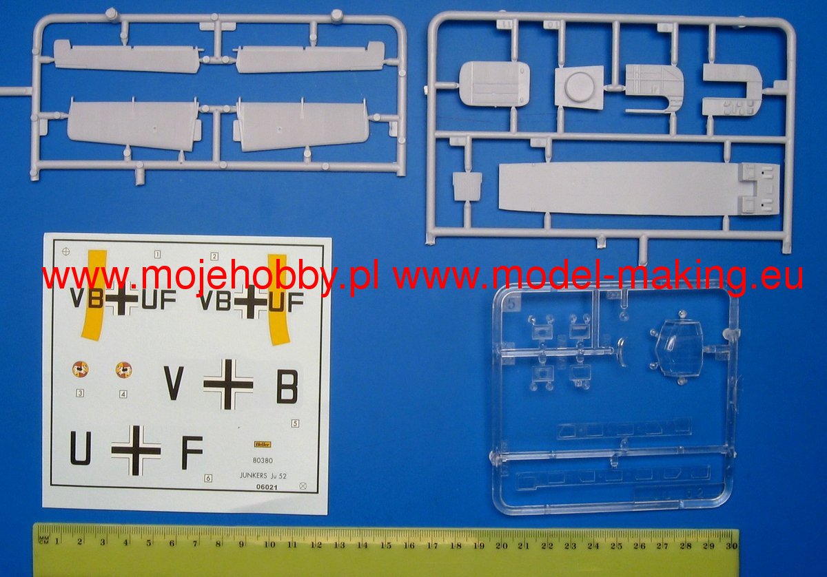 The Junkers Ju-52 is a German three-engine bomber and transport plane in the low wing structure with a classic metal tail tail. The single-engine version of the prototype flew in 1930, and the first three-engine version (Ju52 / 3m) took off a year later. Originally, the Ju-52 was used by Lufthansa as a passenger and transport plane, but at the end of 1933 a long and fruitful military career began. In the beginning, in 1933-1935, the Ju-52 acted as a "replacement bomber" until the Luftwaffe received the modern He-111 and Do-17. It also found combat use in the Spanish Civil War. Initially, it served as a day bomber, but later - from 1937 - it was often moved to transport tasks. During the September campaign, it also performed two functions - a transport machine and a bomber. However, in the years 1940-1945 its main tasks were broadly understood transport. It was the Ju-52 that were transport planes for the German paratroopers in Crete in 1941, and they also towed the gliders attacking Fort Eben-Emael in 1940. They were used extensively in North Africa and on the Eastern Front. It was Ju-52 that created the air bridge in the boiler near Demianske and in Stalingrad. The most common propulsion was, depending on the version, Pratt-Whitney Hornet engines with 600 HP each or BMW 132 with 830 HP each. The Ju-52 was a solid machine, easy to operate, highly reliable and cheap to produce. He gained a lot of recognition from pilots and was nicknamed "Tante Ju" (German aunt Ju). The last Ju-52 was withdrawn from service in the Swiss aviation only in the early 1970s! Technical data: length: 18.9m, wingspan: 29.24m, height: 4.65m, maximum speed: 265km / h, climb speed: 2.9m / s, maximum range: 1000km, maximum ceiling 5900m, armament: permanent - from 1 to 3 machine guns cal.7.92 or 13mm, suspended - up to 1500 kg of bombs.