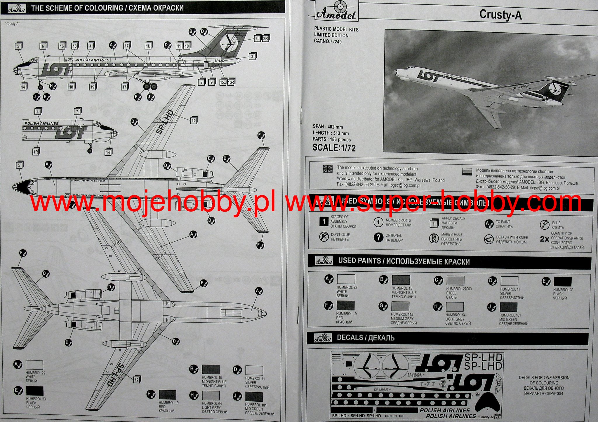 The Tupolev Tu-134 was a Soviet-made twin-engine passenger and transport jet plane. The propulsion was provided by two Soloviev D-30-II turbojet engines. The prototype flight took place in 1963, and serial production continued in 1966-1984 at the Kharkiv Aviation Works. About 850 aircraft of this type were built in its course. Single copies of this aircraft were still in service in 2016. The Tupolev Tu-134 was created in response to the demand reported by the Aeroflot airline for a completely new passenger plane, much more technologically advanced than the Tu-124. The Tupolev Design Bureau originally wanted to significantly modify the Tu-124 machine, but in the end it was decided to create a completely new aircraft. Finally, the Tu-134 used many technological innovations that appeared in Western designs in the 1950s and 1960s, such as engines placed on pylons at the rear of the fuselage. From the design side, the plane turned out to be a successful machine, but it did not provide high travel comfort due to the large noise in the cabin and its tightness. The machine, in the course of serial production, has received several development versions, such as: Tu-134 (the first mass-produced passenger version), Tu-134A (extended version, capable of taking up to 84 passengers), Tu-134SH (aircraft for special tasks) or Tu-134UBL (aircraft used for training pilots). Tupolev Tu-134 planes were used by airlines from countries such as Bulgaria, Czechoslovakia, East Germany, Poland (LOT Polish Airlines) and the Soviet Union.