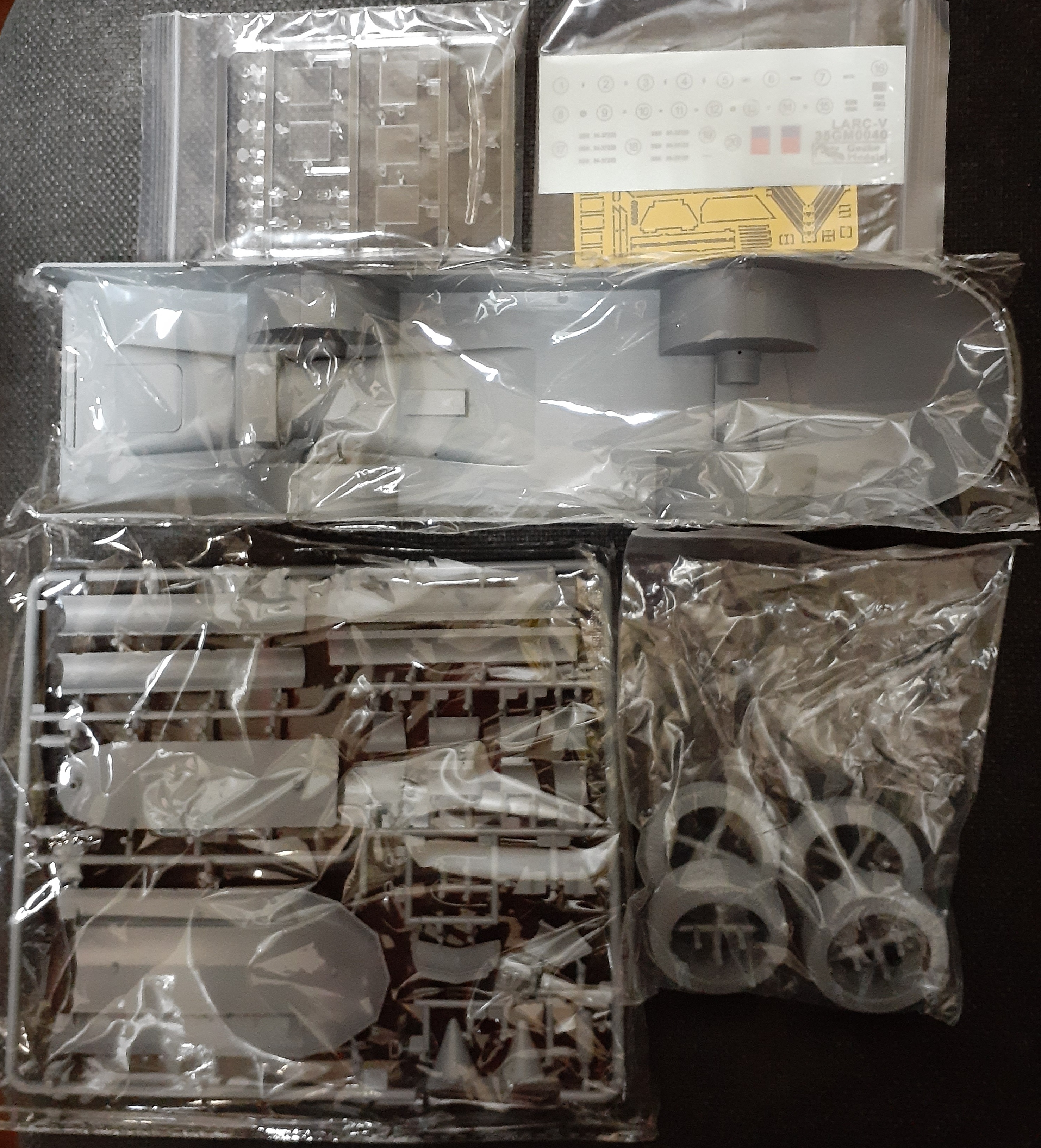 Описание Комплект пластиковых деталей для сборки масштабной модели десантного грузового автомобиля LARC-V ВМС США в масштабе 1:35. В комплект входят детали на металлической пластинке фототравления.