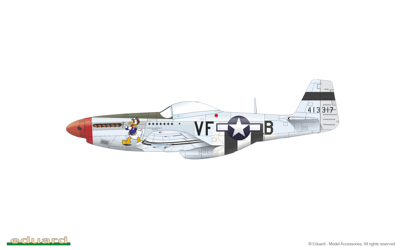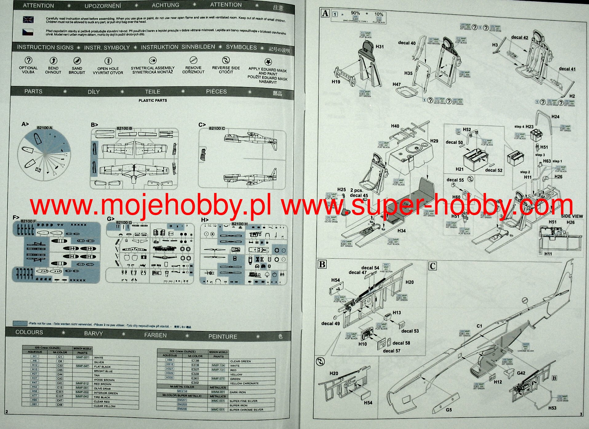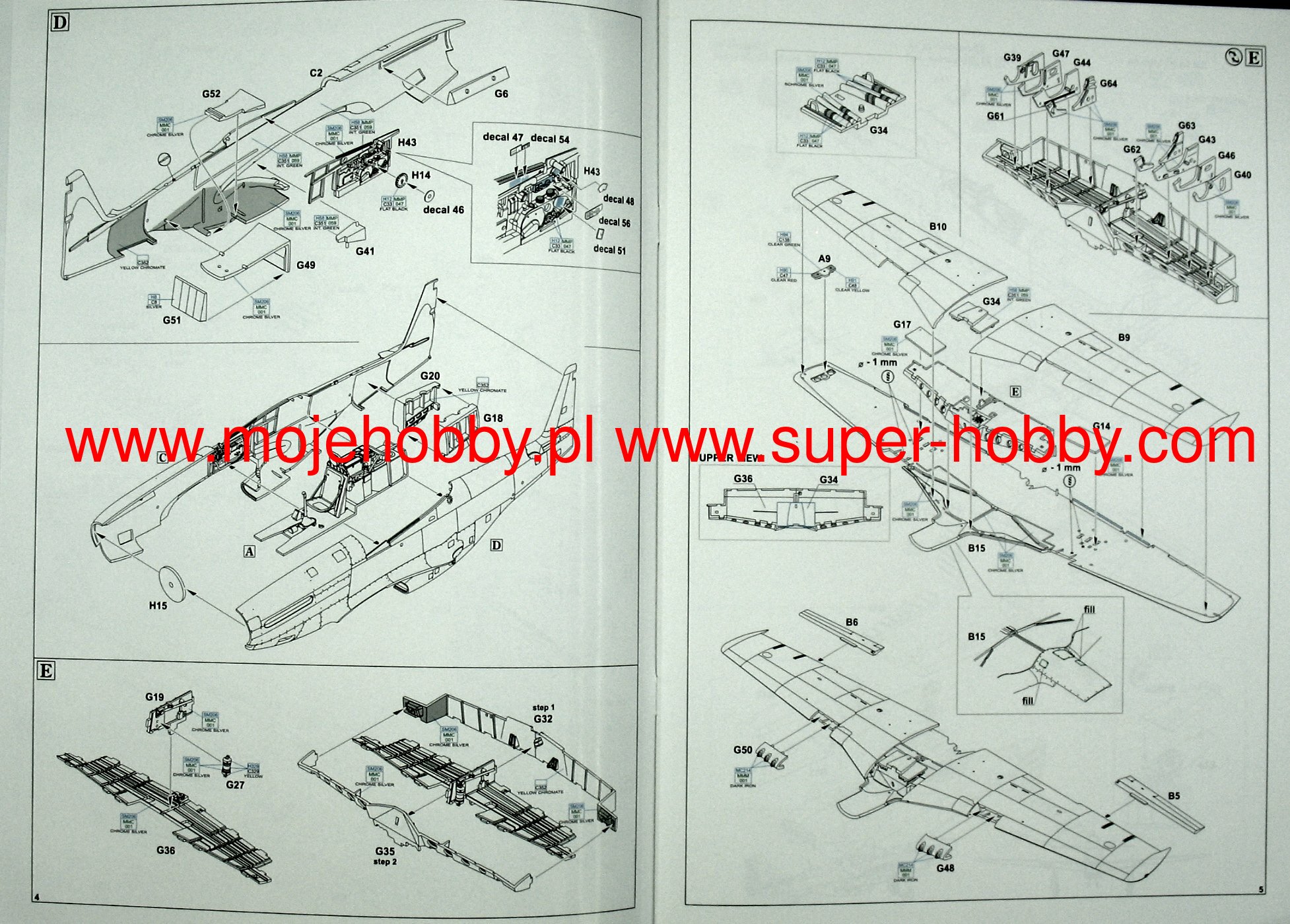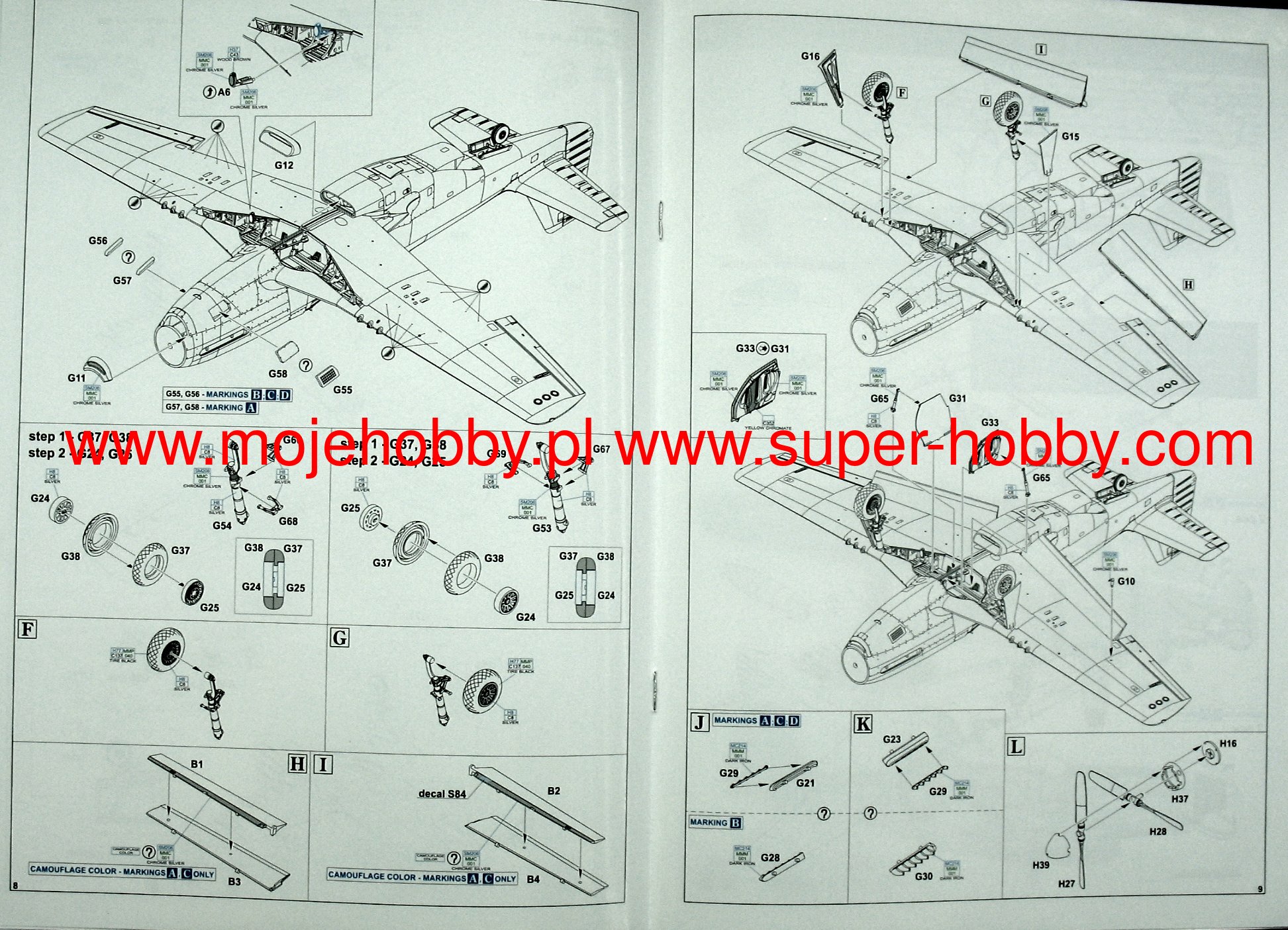 The North American P-51 Mustang is an American, single-engine, long-range fighter and attack aircraft with a classic tail and all-metal construction. The flight of the prototype took place on October 26, 1940. The P-51 Mustang has earned a reputation as one of the best, if not the best, WWII fighter. Replacing the Allison V-1710-39 engine from the first project with a Rolls-Royce Merlin motor (P-51 Mustang Mk.Ia version) made the Mustang, like never before, reached perfection. The single-seat fighter impressed with its maximum speed, range, maneuverability, and powerful weapons. The combination of all the most important parameters for the assessment of the aircraft made the Mustang prove itself in virtually every role entrusted to it: it gained air superiority, escorted, carried out reconnaissance missions, attacked ground targets. The class of design is evidenced by the fact that the Mustang remained in active service until the 70's! One of the most important versions was the P-51D, based on the P-51B. It received a drip cab fairing, ensuring excellent visibility, and a new engine - Packard V-1650-7, which significantly improved performance. Technical data (P-51D version): length: 9.83m, wingspan: 11.28m, height: 4.08m, maximum speed: 703km / h, rate of climb: 16.3m / s, maximum range: 2755km, ceiling practical: 12800m, armament: fixed - 6 12.7mm M2 machine guns, suspended - up to 908 kg of bombs or 10 127mm HVAR rocket launchers. 3_edu84172_instruction_sheet.pdf