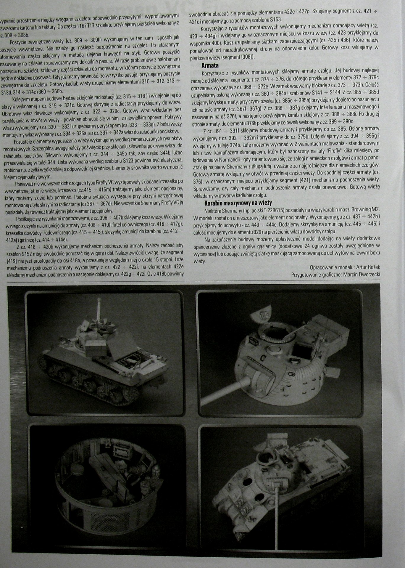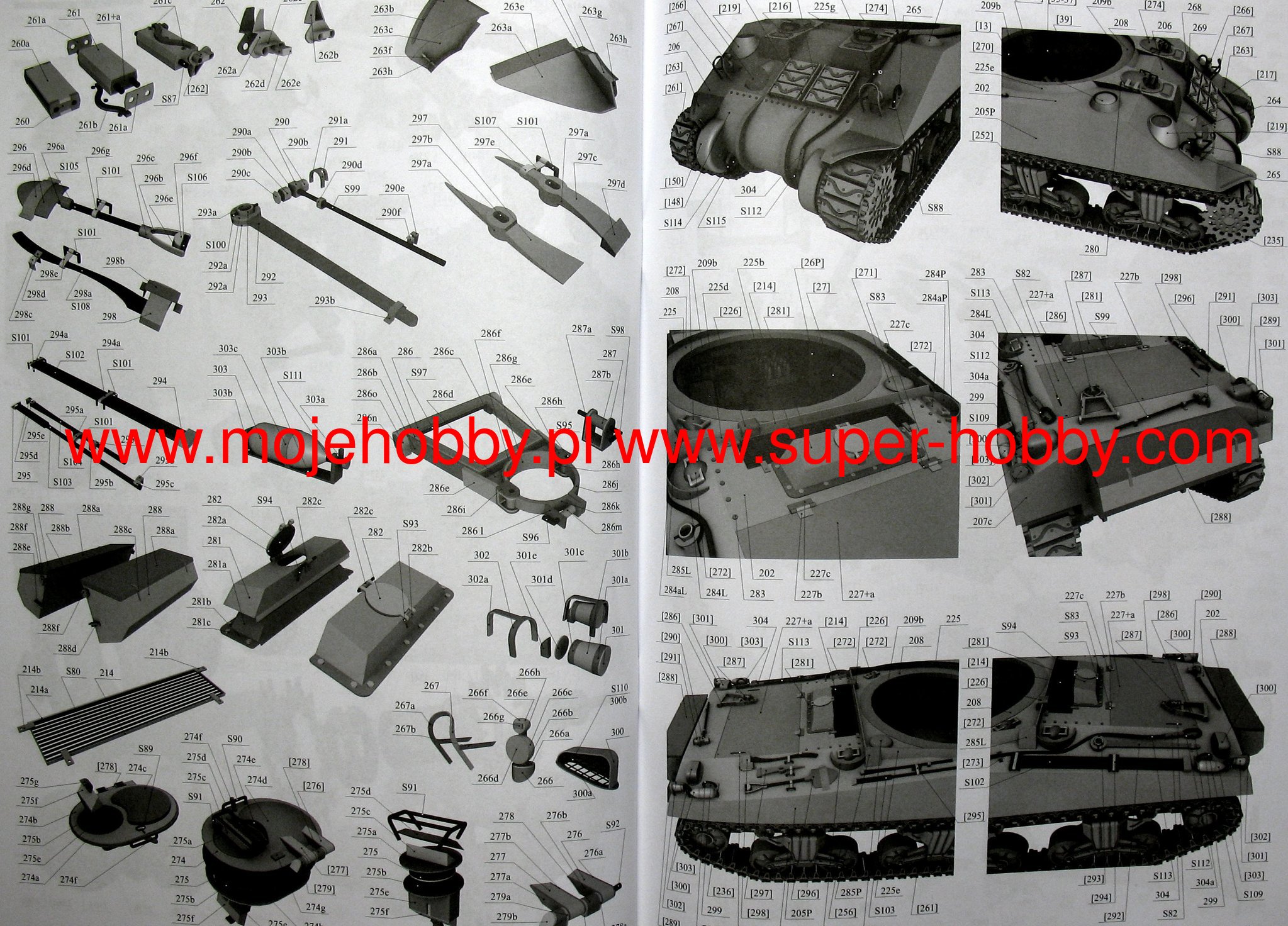 The M4 Sherman was an American medium tank from the Second World War. The first prototypes were built in 1941, and serial production was carried out in the period 1942-1945. In total, about 49,000 copies of this tank of all versions were created, which makes it one of the most produced tanks of the Second World War and the most important tank in the equipment of the Allied armies during this conflict. The M4 Sherman was powered by a single engine version of the M4A1 Continental R 975 C4 with a power of 400 hp . The vehicle was armed with - depending on the version - a single 75mm M3 cannon or a 76mm M1 cannon or a 105mm M4 howitzer and two 7.62mm Browning1919A machine guns. The M4 Sherman was developed as the successor to the M2 and M3 tanks, although it used many of the latter's components. First of all, it only used a slightly changed chassis of the M3 Lee car. When designing the M4 Sherman, the emphasis was primarily on playing the role of an infantry support vehicle, and not fighting enemy tanks - this was the role of American tank destroyers. Only possible clashes with the carts were assumed Pz.Kpfw III and Pz.Kpfw IV. A significant role was also played in the mass production of the new tank and the lowest possible production costs. The result was a tank with good armament for 1942 and early 1943, average armor, but with a tilted front plate, but also with poor maneuverability and - especially in the first versions - very susceptible to fire as a result of hitting the engine compartment . At the same time, however, a tank was created that could be truly large-scale production and had a significant modernization potential. Many development versions were created in the course of serial production M4 Sherman. Chronologically the first was the M4A1 version that already had a cast armor. Another - M4A2 - had welded armor and a new General Motors 6460 engine with 375-410hp, but much less prone to fire. A version of the M4A3 also appeared, armed with a 105 mm howitzer and powered by a Ford GAA engine with a capacity of 450 HP. Based on the M4A3 version, two sub-versions were created: the M4A3E2 Jumbo with reinforced armor and the M4A3E8 with the HVSS and 76mm gun. An interesting development version was also the T34 Calliope with mounted missiles not guided on the turret. The M4 Sherman was also supplied in huge numbers to the British and Red Army. The former developed a version of the Firefly based on it, with a great 17-pounder anti-tank gun. During World War II, M4 Sherman tanks fought in North Africa (1942-1943), Italy (1943-1945), during the battles in Normandy, France and West Germany (1944-1945), but also in the Pacific or in the ranks The Red Army on the Eastern Front. After World War II, the M4 Sherman was used in many countries, including Argentina, Belgium, India, Israel, Japan, Pakistan and Turkey. He also took part in many post-1945 conflicts, including the Indo-Pakistani War of 1965 and the Six-Day War of 1967.