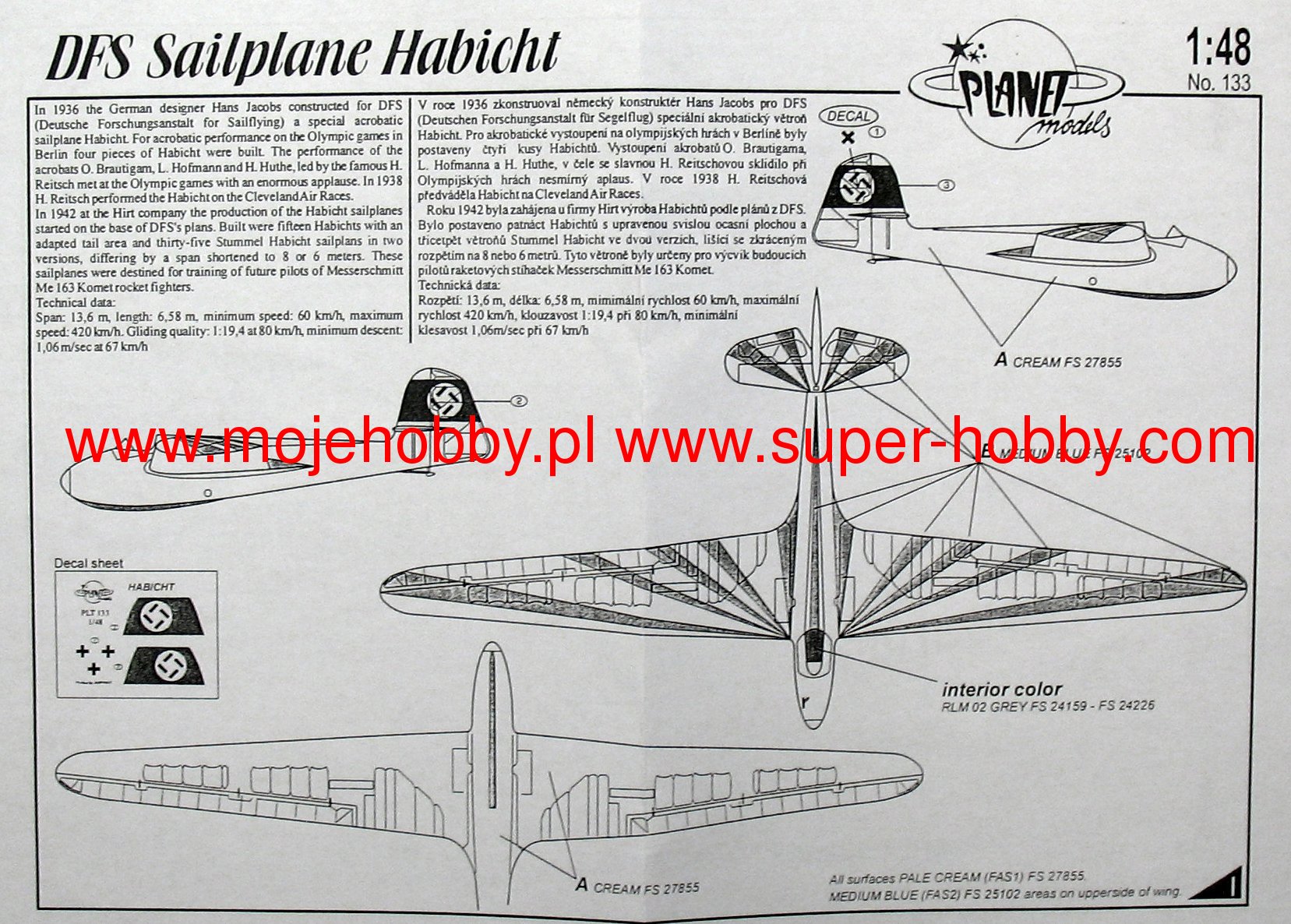 DFS Habicht (Polish hawk) was a German training and sports glider from the interwar period and World War II. The prototype flight took place in 1936. The length of this aircraft was 6.58 meters with a wingspan of 13.6 meters. The own weight of the glider reached 250 kilograms. The DFS Habicht was designed by Hans Jacobs and was produced by the Deutsche Forschungsanstatlt für Segelflug (DFS for short). The glider was constructed for the Olympic Games in Berlin in 1936, where it attracted considerable recognition from the public and professional observers. The glider was characterized by high maneuverability and very good piloting properties. Its improved version (Stummel-Habicht) was used by the Luftwaffe during World War II to train Me-163 and Heinkel Hs-162 pilots. Only a few DFS Habicht and Stummel-Habicht gliders survived the war.
