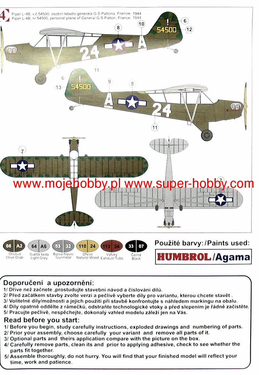 The Piper L4 (Piper Cub) is an American light transport and observation aircraft in the high wing configuration, with a mixed structure with a fixed landing gear and classic tail from the Second World War. The roots of the L4 go back to the civilian prototype called E-2, which first took to the air in September 1930, and which was mass-produced in the 1930s and received numerous development versions (including J-2, J-3 or J-5). In 1941, the J-3 version was adapted to the USAF's needs and designated the O-59, and eventually the L4. Several development versions were created, the first of which is the L4A, better adapted to the observation of the battlefield by increasing the cabin glazing. A lot of engines were used as the drive, including Continental A-65-8. The machine was widely used by the US Army in Europe as the basic liaison and battlefield observation aircraft. It was used both in North Africa and later in Italy and Normandy. The machine was nicknamed Grasshopper. About 20,000 were made of all versions of this plane! Specifications: length: 6.83m, wingspan: 10.74m, height: 2.03m, maximum speed: 140km / h, climb speed: 2.3m / s, practical ceiling: 3500m, maximum range: 354km.